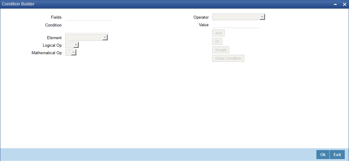 Specify the case(s) for defining the rule in this field. The case will hold the expression using which the system will resolve the product. You can define a rule/case using the ‘Elements’ (SDEs), ‘Mathematical Operators’ and ‘Logical Operators’ provided in the respective drop-down boxes.