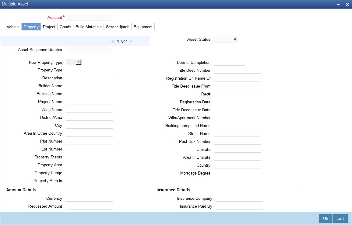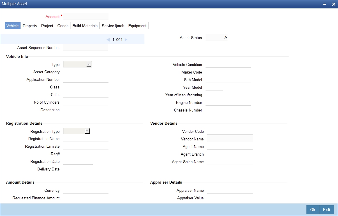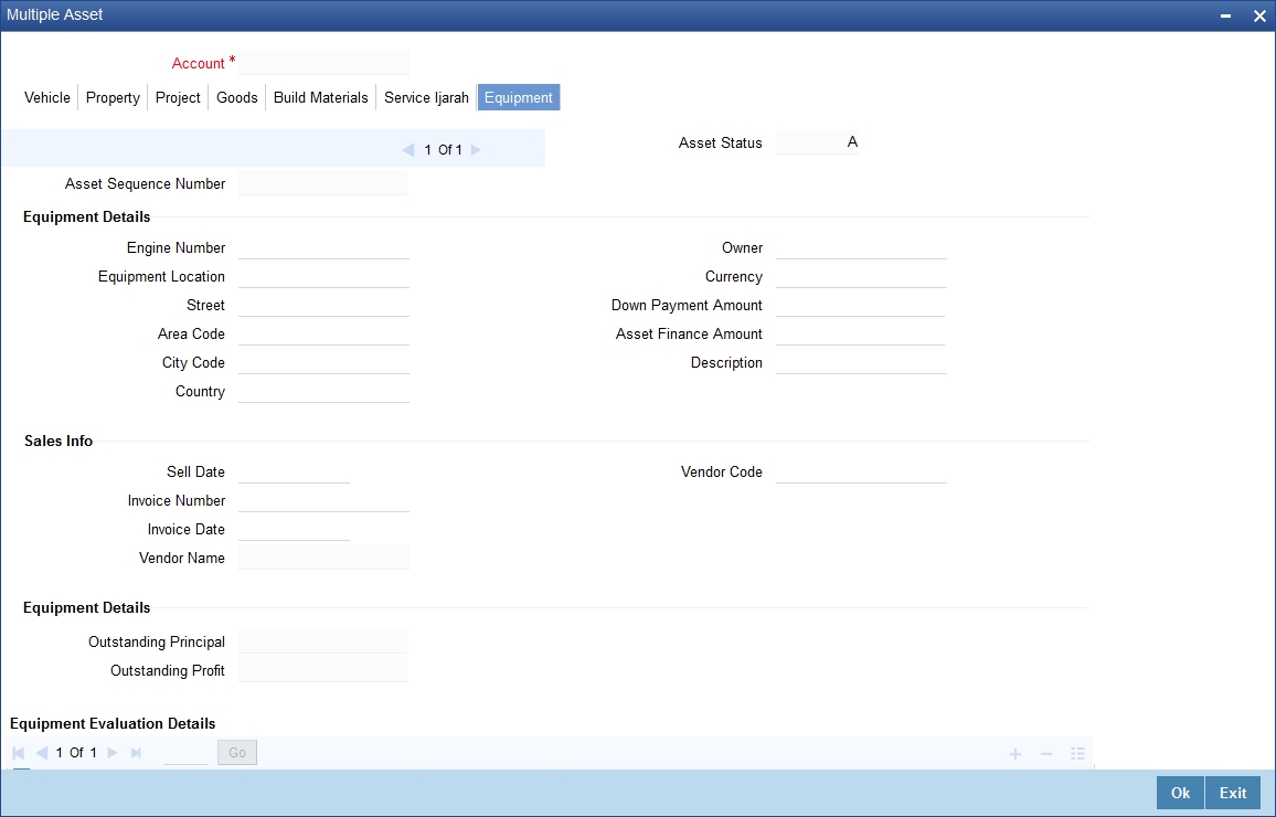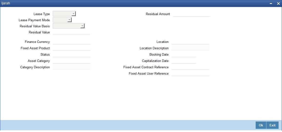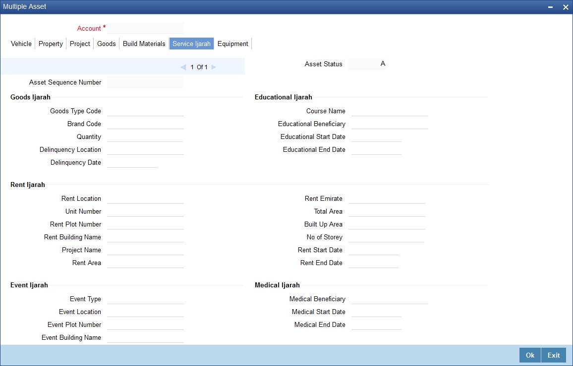 Click ’Ijarah’ button in the ‘Account Simulation - Main’ screen and invoke the ‘Ijarah’ screen.