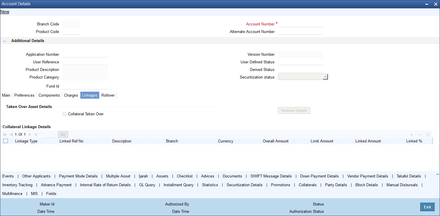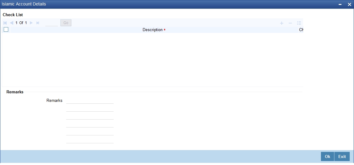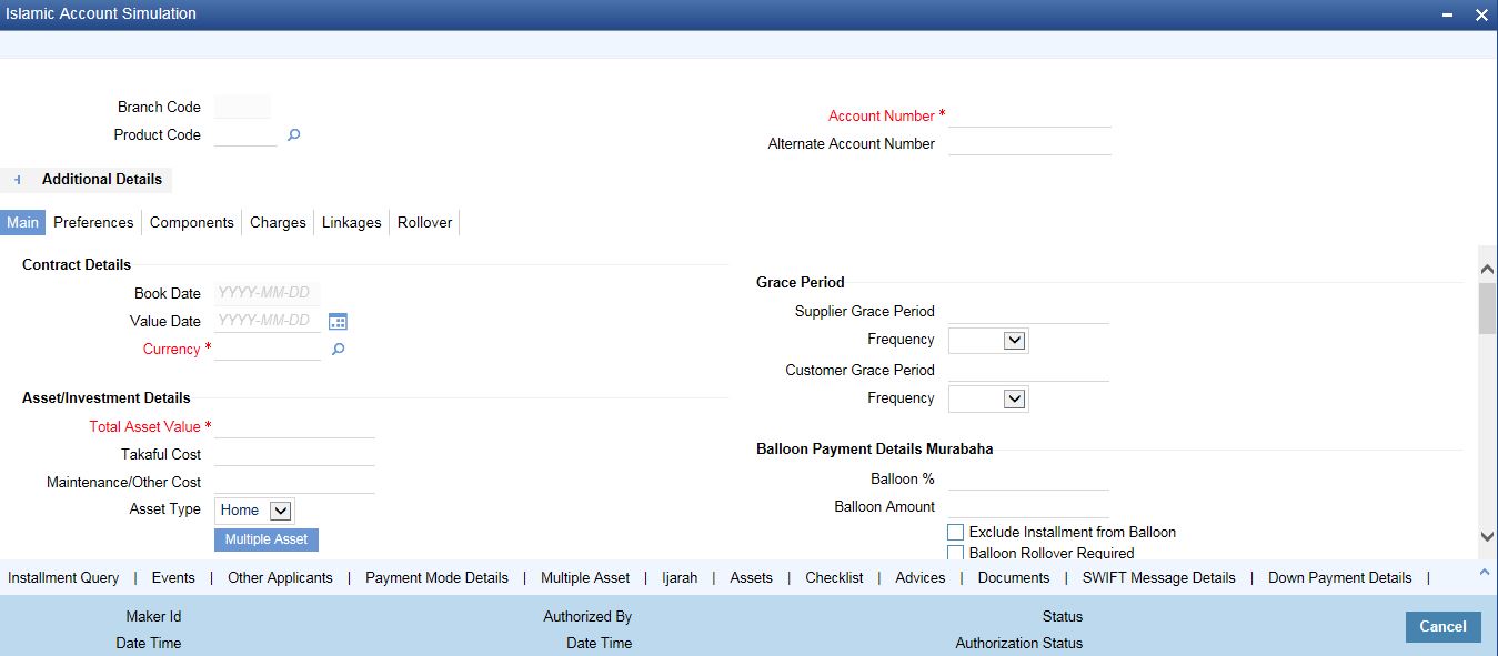 Click ‘Main’ tab in ‘Islamic Account Details’ screen.