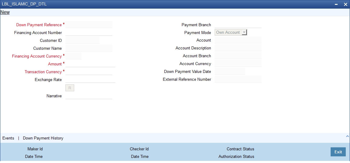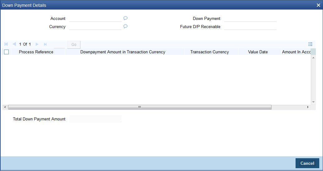 Teller limit validation will be based on transaction currency and amount. On authorization of the Down Payment Cash transaction, the system will internally trigger Down Payment Detail transaction with payment mode as ‘GL Transfer’.