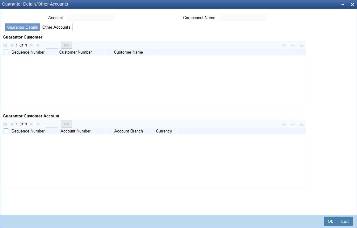 The system populates the component name, currency and the outstanding amount for the component subsection.