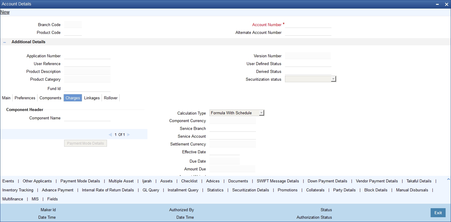 You can use the ‘Account Simulation’ screen to simulate a finance. This screen is similar to the ‘Account Details’ screen. You can invoke this screen by typing ’CIDSIMNT’ in the field at the top right corner of the Application tool bar and clicking the adjoining arrow button.