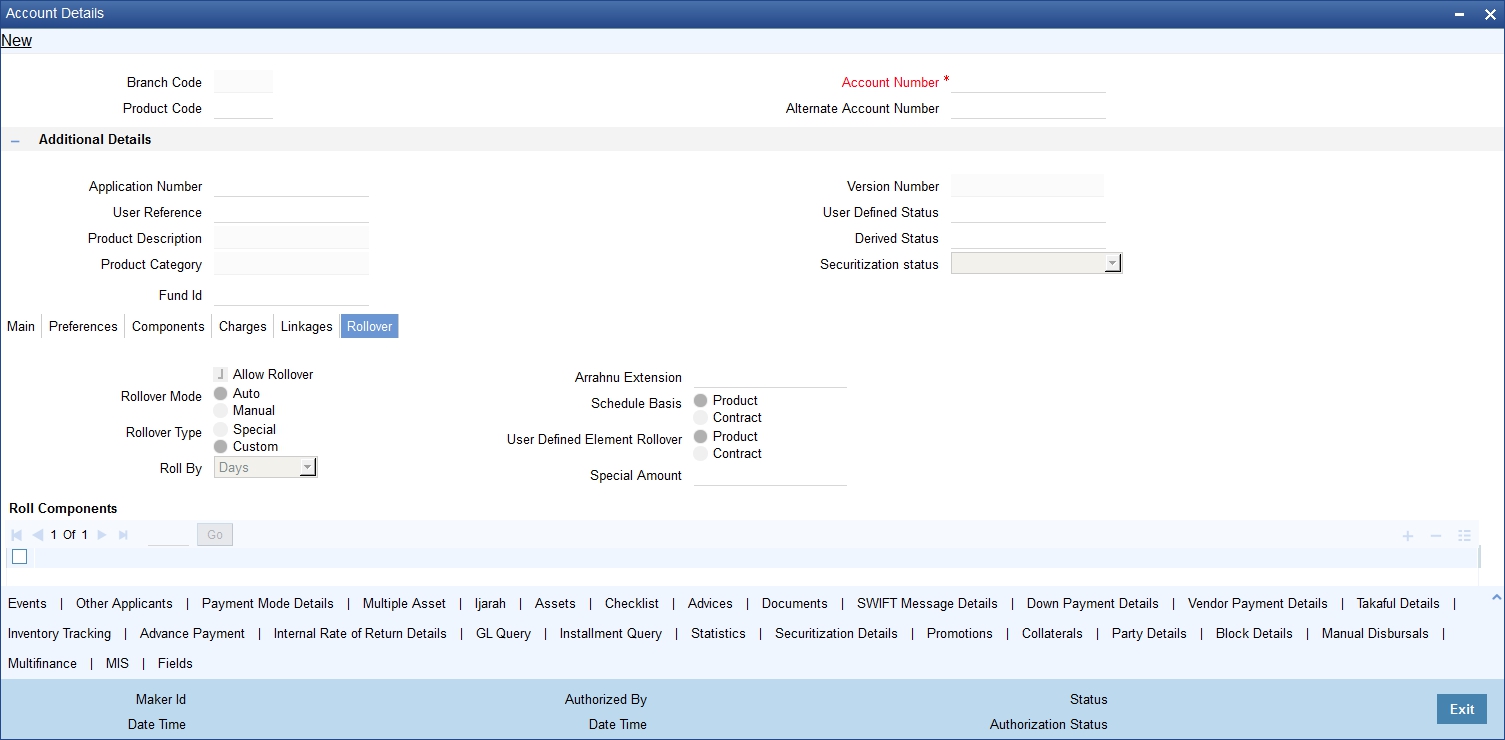 The system displays the current Version Number of the account. A new version number is created when changes like Roll over, Amendment are made to a finance.