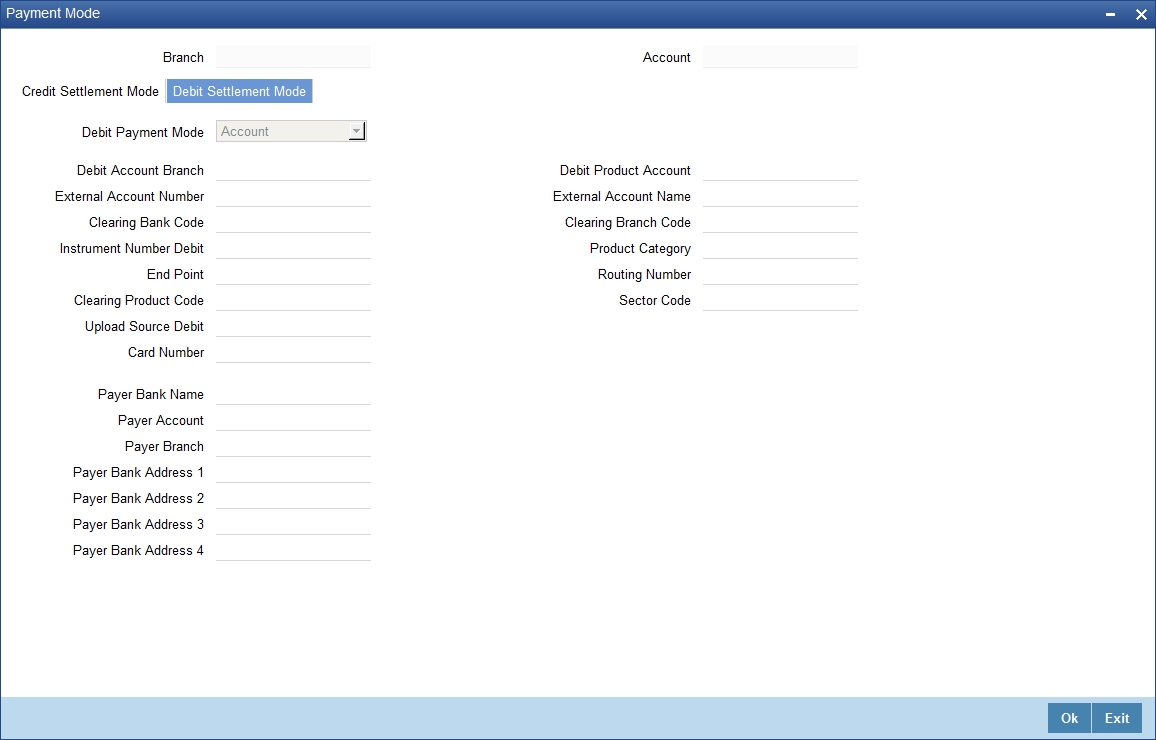 The system will populate the settlement details with the payment mode as ‘Account’ as follows: