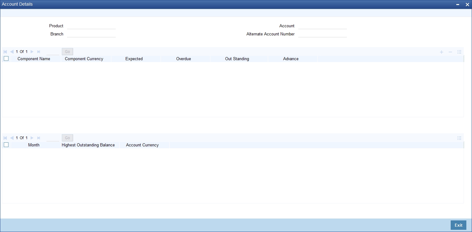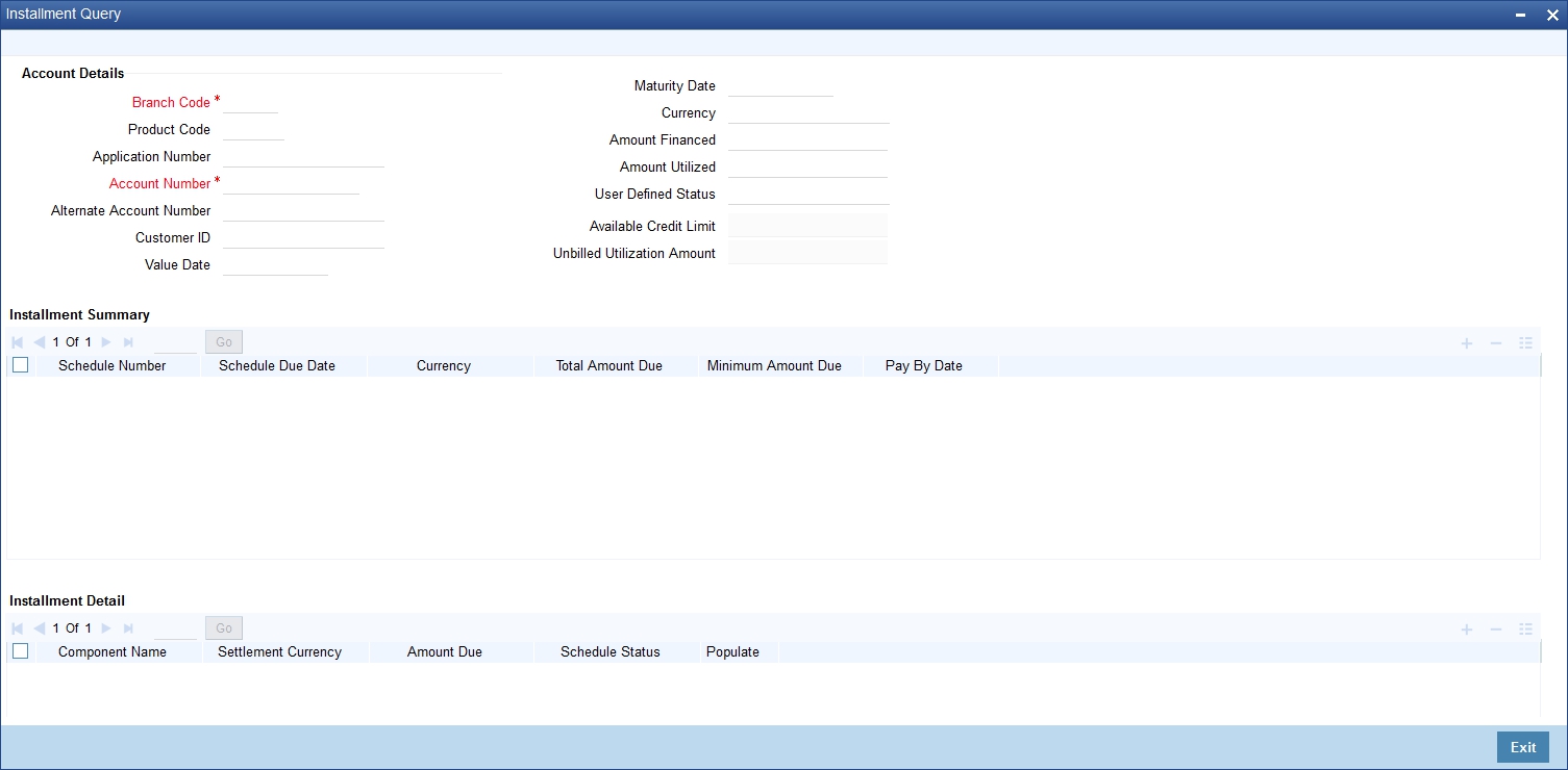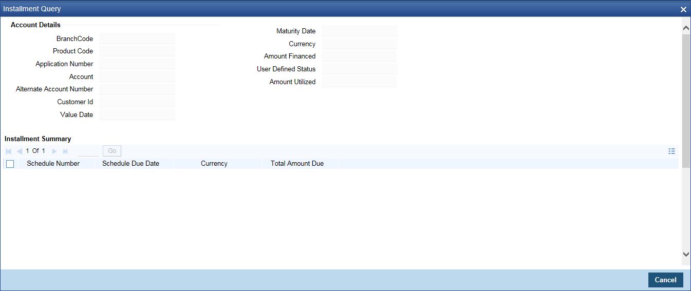 The screen helps you to query the installment details of all the available components based on the Schedule due date. On product default, installment details will be repopulated if there is any impact on schedules.