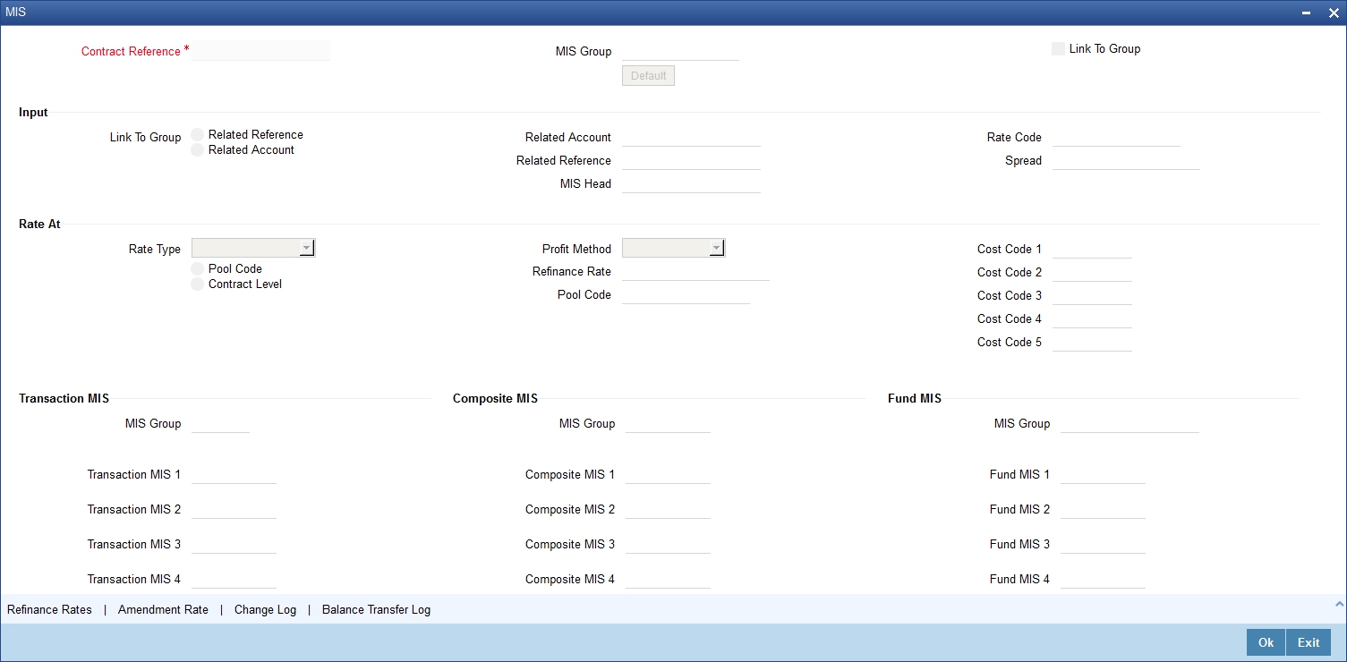 You can specify MIS details by clicking ‘MIS’ button in ‘Murabaha - Payment by Cash’ screen.