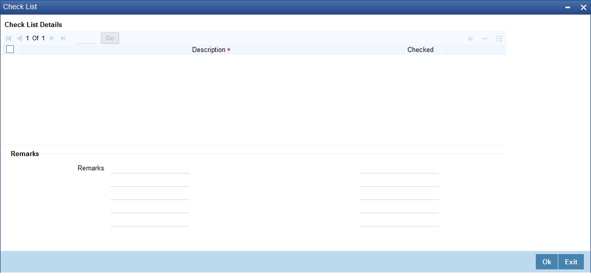 To every online event, you can associate check list items through the ‘Event Checklist’ screen. To view the checklist items associated with the ‘Disbursement’ event (DSBR), click on the ‘Check List’ tab.