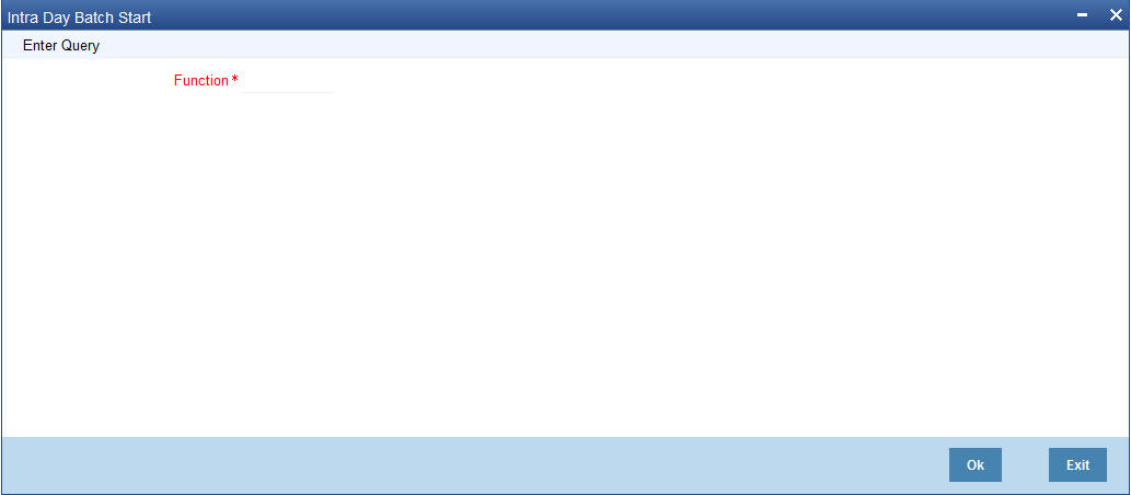 The Intra Day Accruals is a batch process that computes accruals for different kinds of investments made by funds. This batch includes processing of fixed asset depreciation. The intraday accruals / depreciation are performed only for those products for which accruals / depreciation cycle is due for the day. In case of inter-fund subscriptions, the system does not calculate the profit for the investing fund. You can invoke ‘Intra Day Batch Start’ screen by typing ‘BABIDBAT’ in the field at the top right corner of the Application tool bar and clicking the adjoining arrow button.