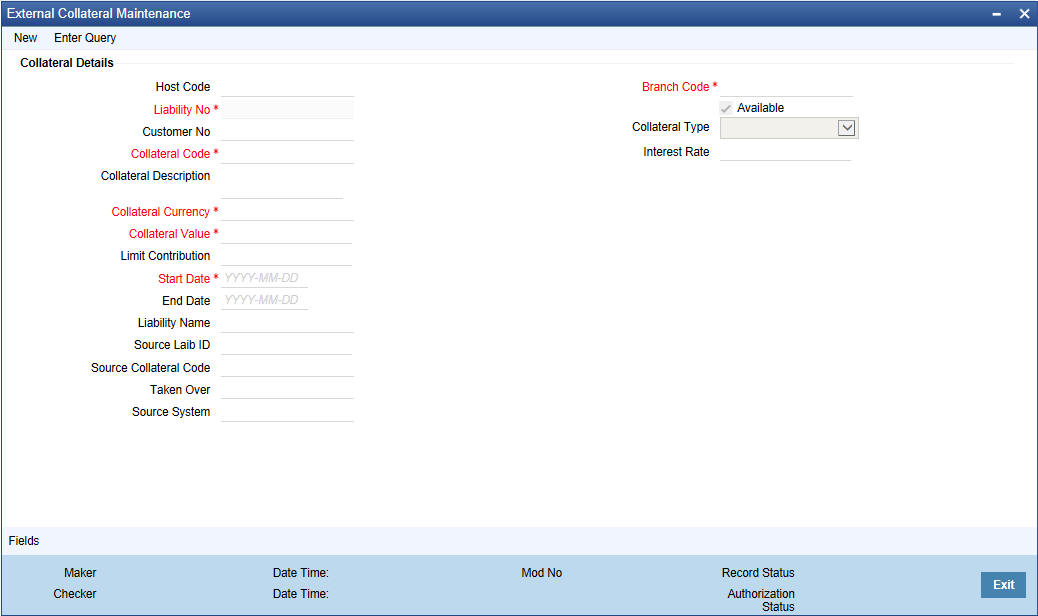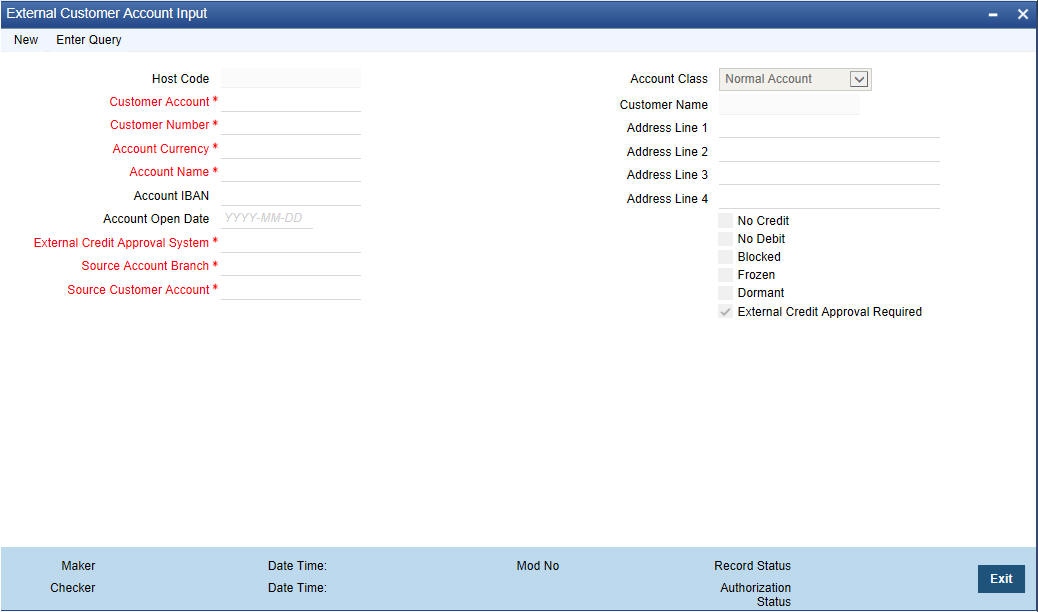Specify the external system’s value for the corresponding Oracle FLEXCUBE value.