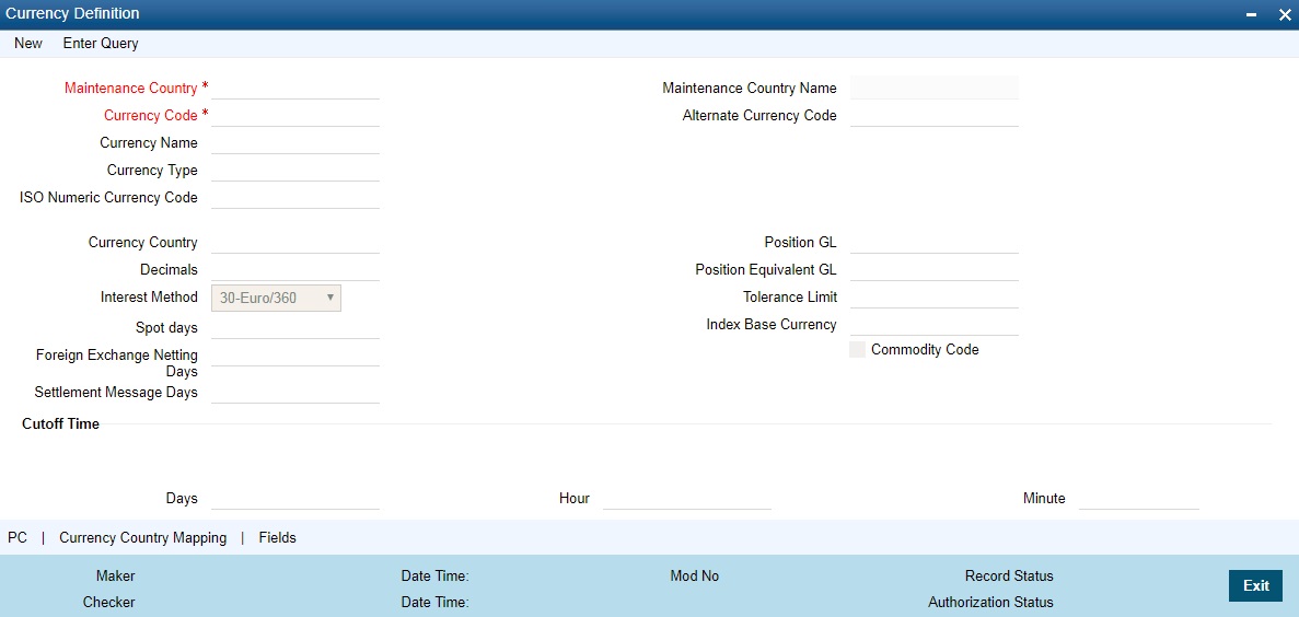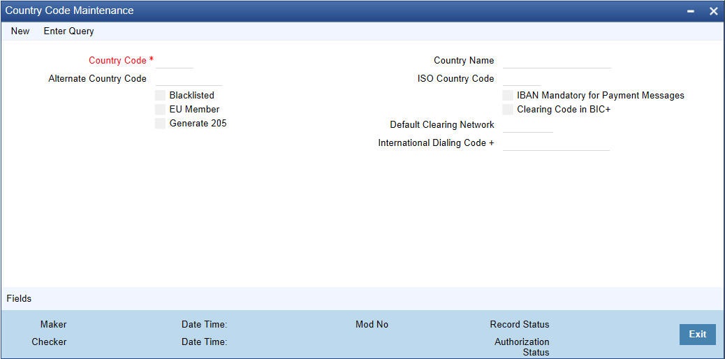 You can define country name through the ‘Country Code Maintenance’ screen. You can invoke this screen by typing ‘’STDCNMNT’ in the field at the top right corner of the Application tool bar and clicking the adjoining arrow button.
