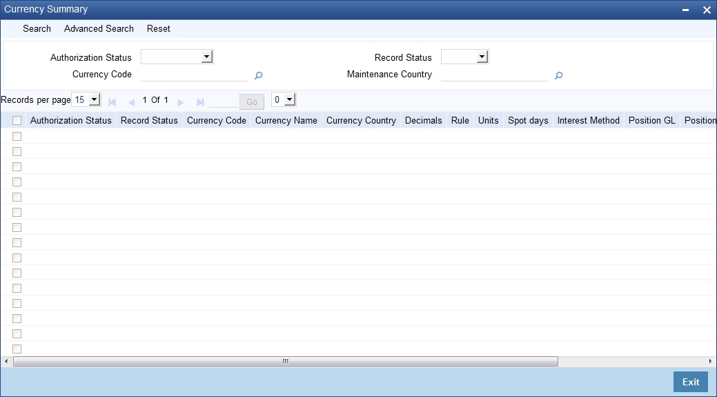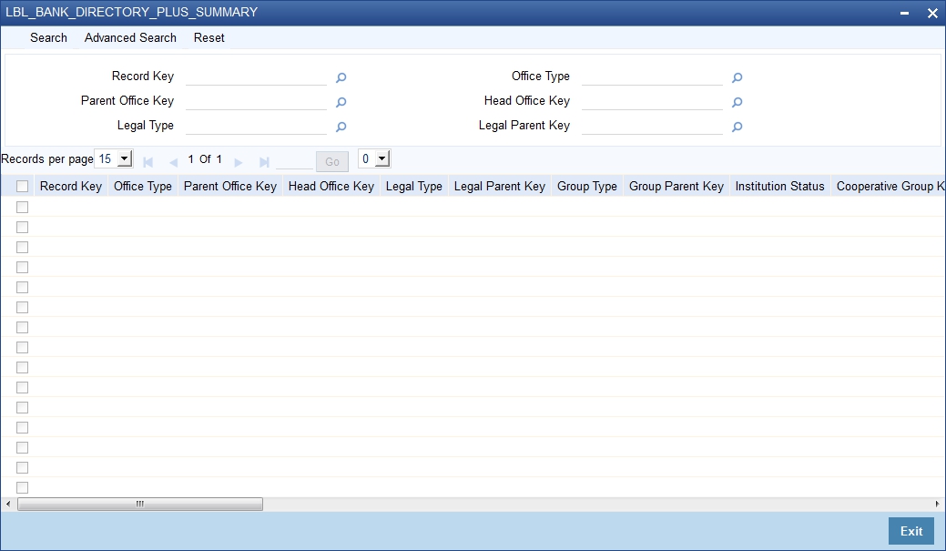 Once you have specified the search parameters, click ‘Search’ button. The system displays the records that match the search criteria for the following: