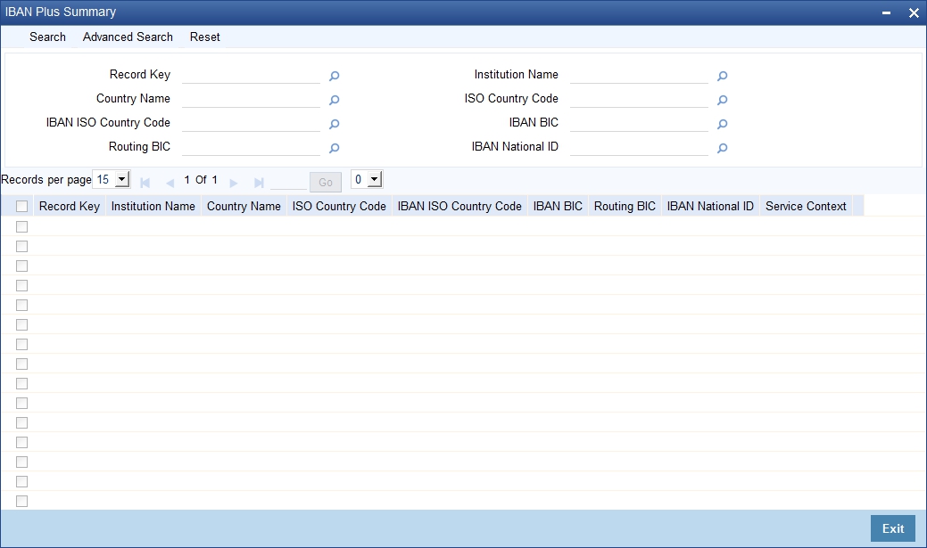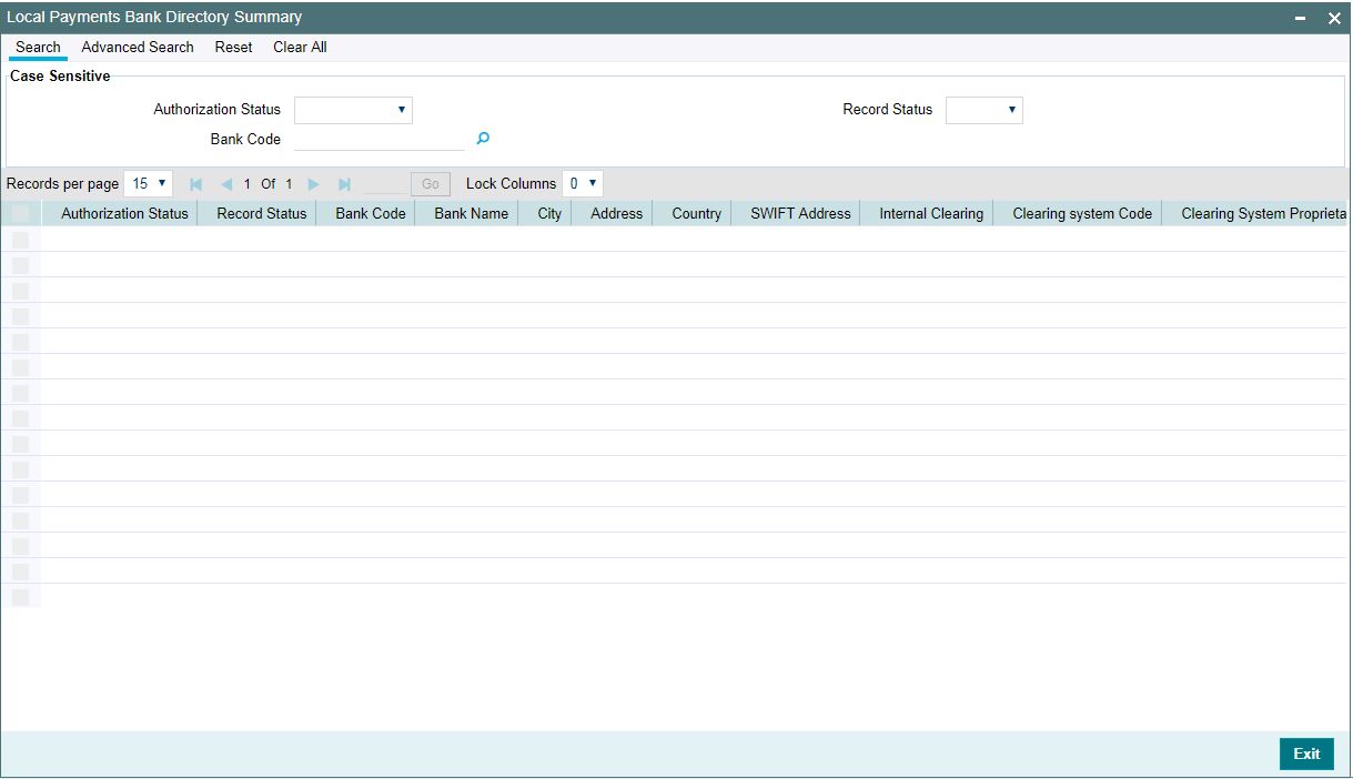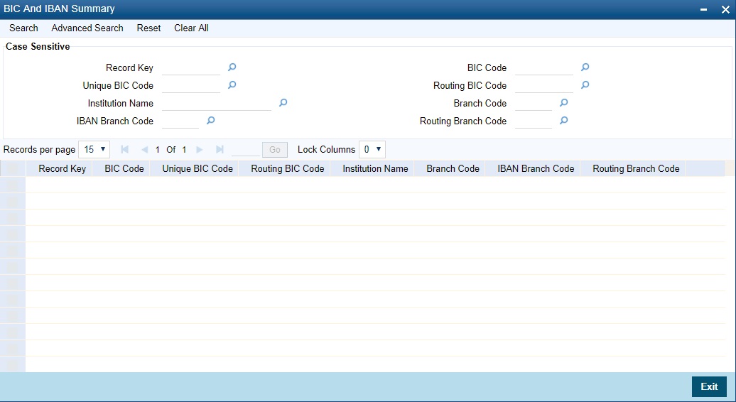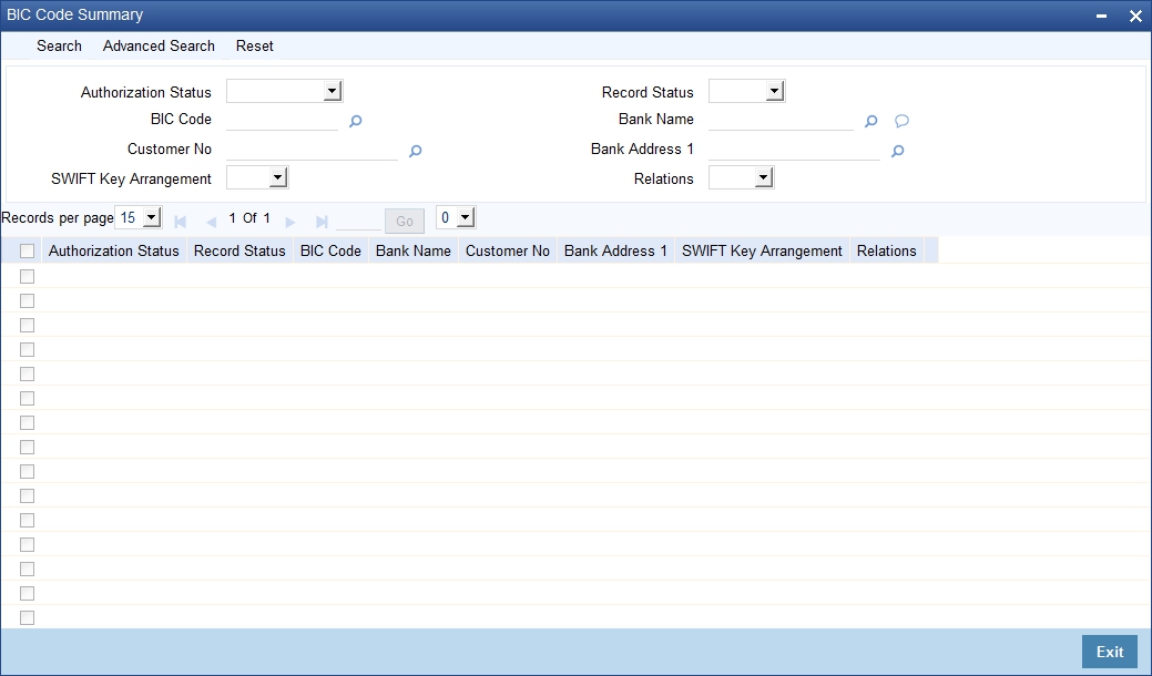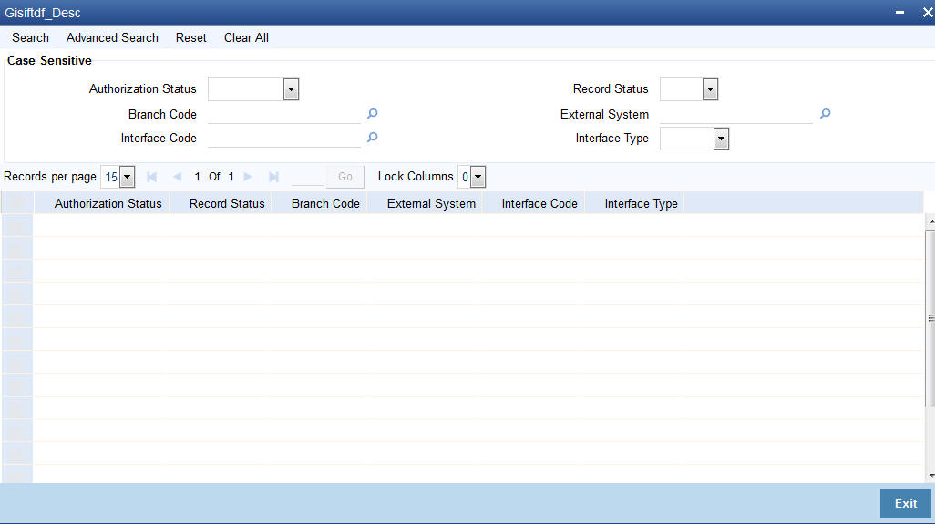 You can click ‘Search’ button to view all the interface records of your bank. You can filter your search based on any of the following criteria: