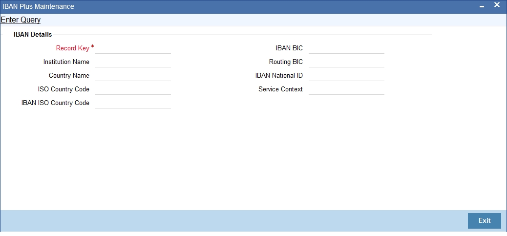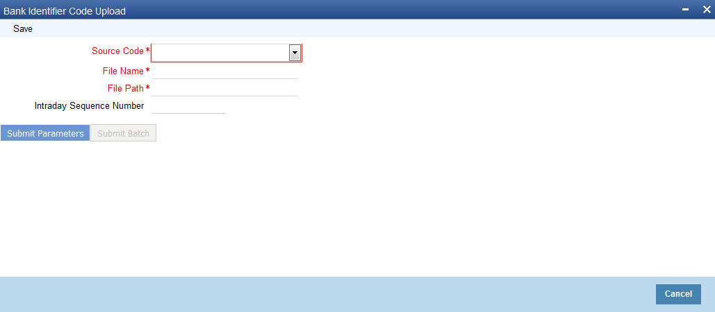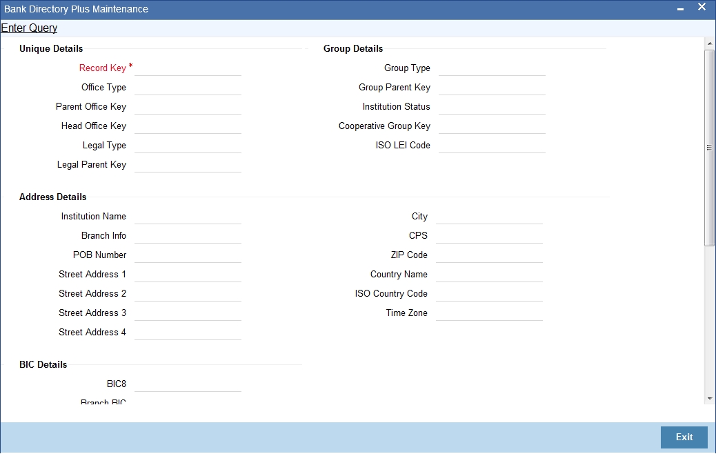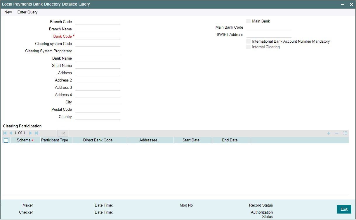 You can invoke ‘Bank Core Parameters Maintenance’ screen by typing ‘STDCRBNK’ in the field at the top right corner of the Application tool bar and clicking on the adjoining arrow button.
