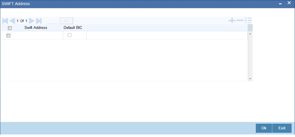 Specify the required SWIFT Address. Alternatively, you can also select the SWIFT address from the adjoining option list.