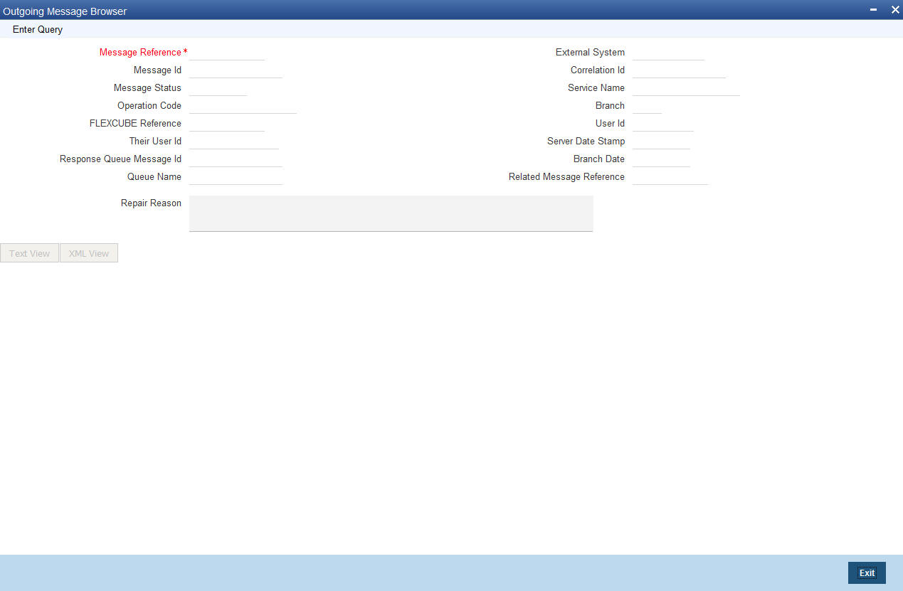 In the ‘Outgoing Message Browser’ screen you can view the details of the messages sent to the external systems. You can also view the messages in the XML format or the Text format.