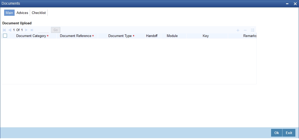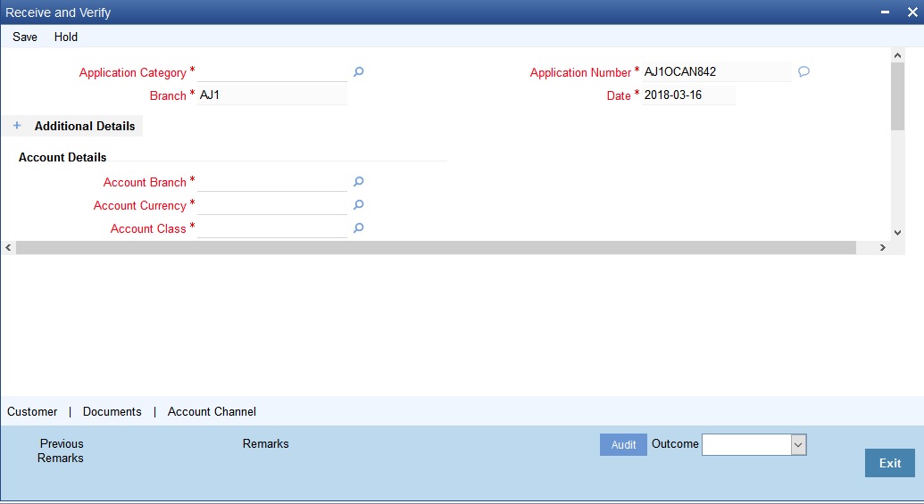 You can store the current account opening form and other supporting documents are stored in a safe and accessible location. This storage information can be recorded using ‘Store Documents’ screen. You can capture the storage details in this stage.