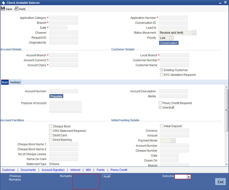 If initial deposit is required, then you have to check the available balance. For this, go to the pending list and Click ‘Acquire’ button adjoining the ‘Check if Balance Available’ task to acquire it. The system displays the information message as “The task is completed successfully”
