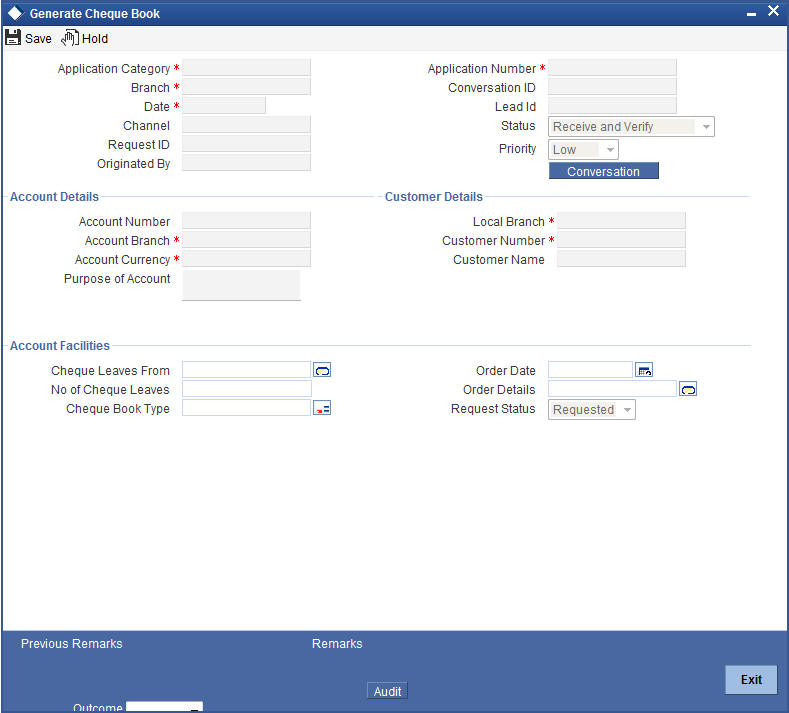 Click the ‘OK’ button in this screen. You will be taken back to the ‘Generate Cheque Book’ screen. Click ‘Exit’ button to exit the screen. The task is then moved to the next activity i.e. delivery account kit to the customer.