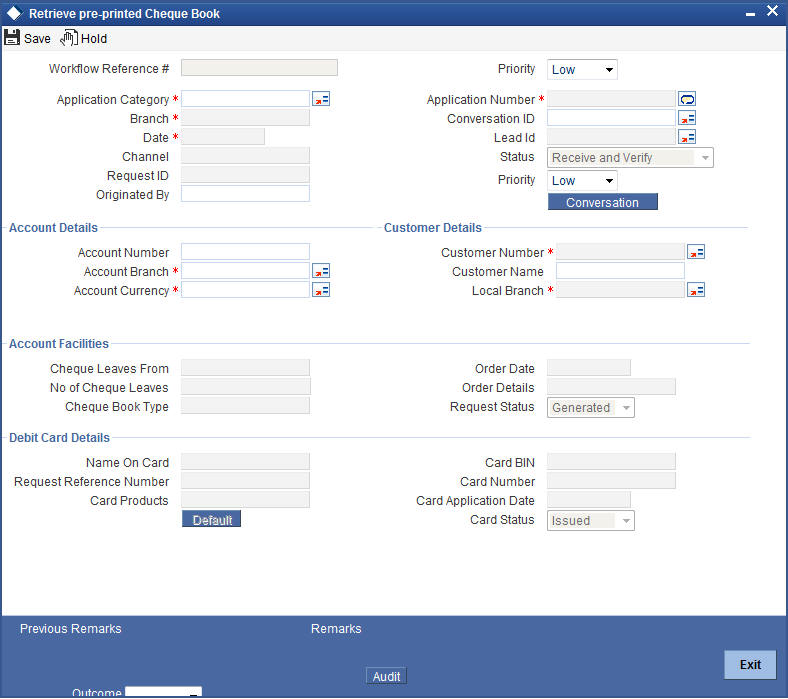 Click the ‘OK’ button in this screen. You will be taken back to the ‘Retrieve Pre-printed Cheque Book’ screen. Click ‘Exit’ button to exit the screen. The task is then moved to the next activity i.e. delivery account kit to the customer.