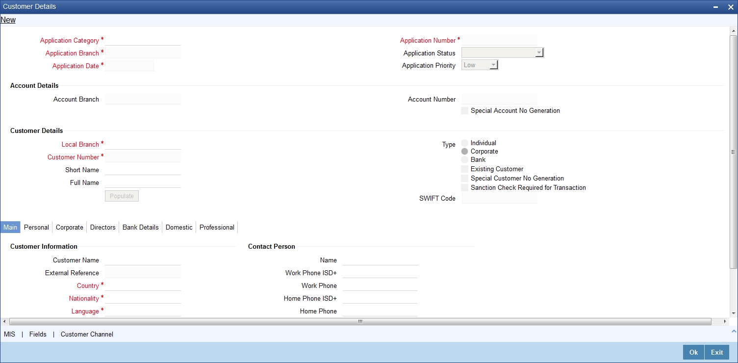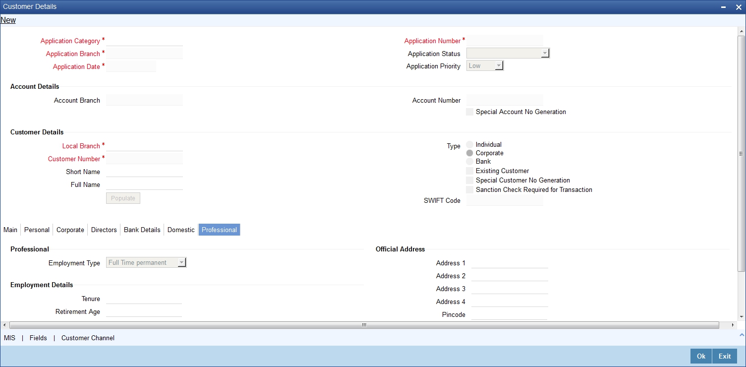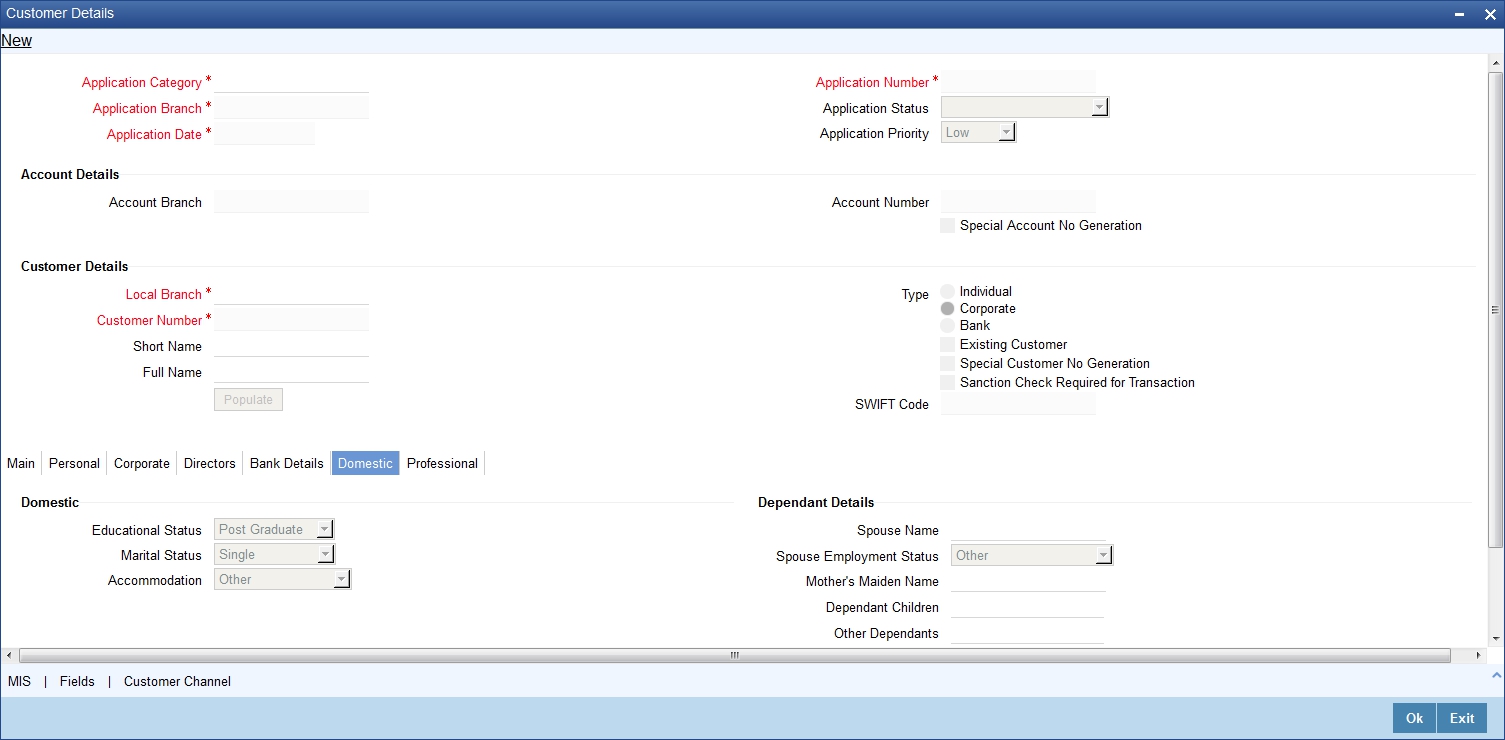 The system defaults the Customer name when default button is pressed, if the applicant is an existing customer. However, you can specify the customer name, if the applicant is prospect.