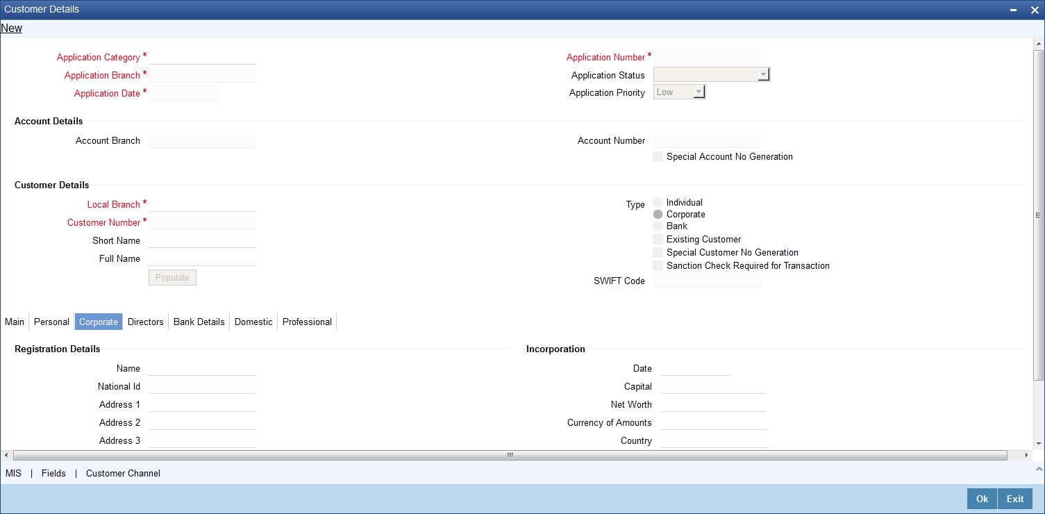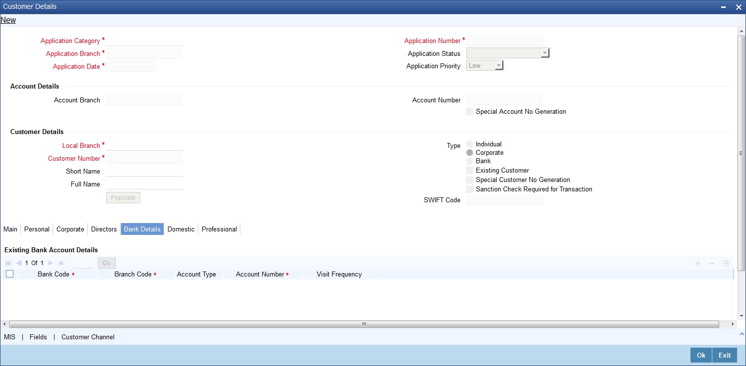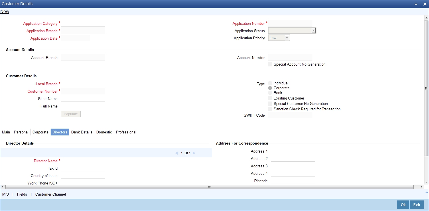 The system defaults the Customer name when default button is pressed, if the applicant is an existing customer. However, you can specify the customer name, if the applicant is prospect.