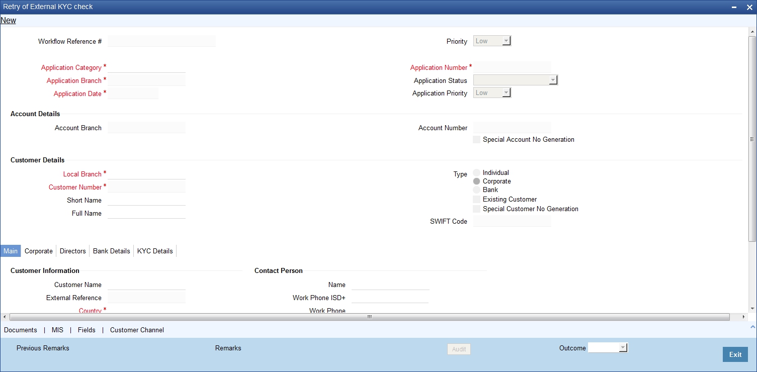 Click ‘Ok’ button. You will be taken back to the ‘Retry of External KYC Check’ screen. Click ‘Exit’ button to exit the screen. The task is then moved to the next activity.
