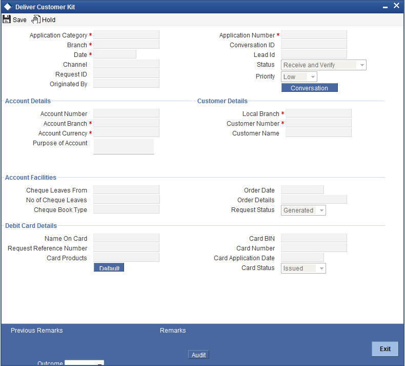 Details entered here are handed off to Debit card request tab in Customer Account Maintenance screen and debit card request is processed automatically.