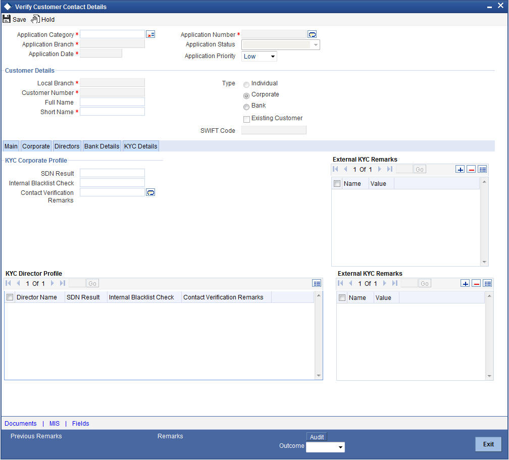 Click ‘Ok’ button. You will be taken back to the ‘Other KYC Checks’ screen. Click ‘Exit’ button to exit the screen. The task is then moved to the next activity.