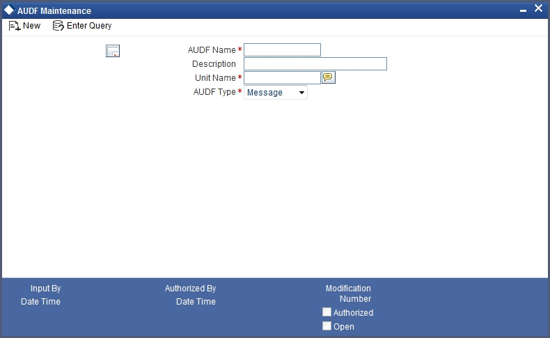 Specify the following AUDF details in this screen.