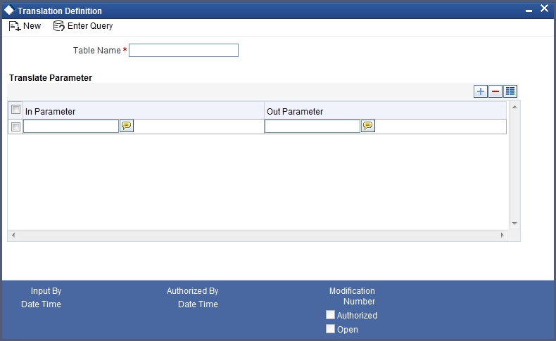 You can maintain translation details required between the external system values to Oracle FLEXCUBE Values and vice Versa in the ‘Translation Definition’ screen. You can invoke this screen by typing ‘GIDTRANS’ in the field at the top right corner of the Application tool bar and clicking the adjoining arrow button.