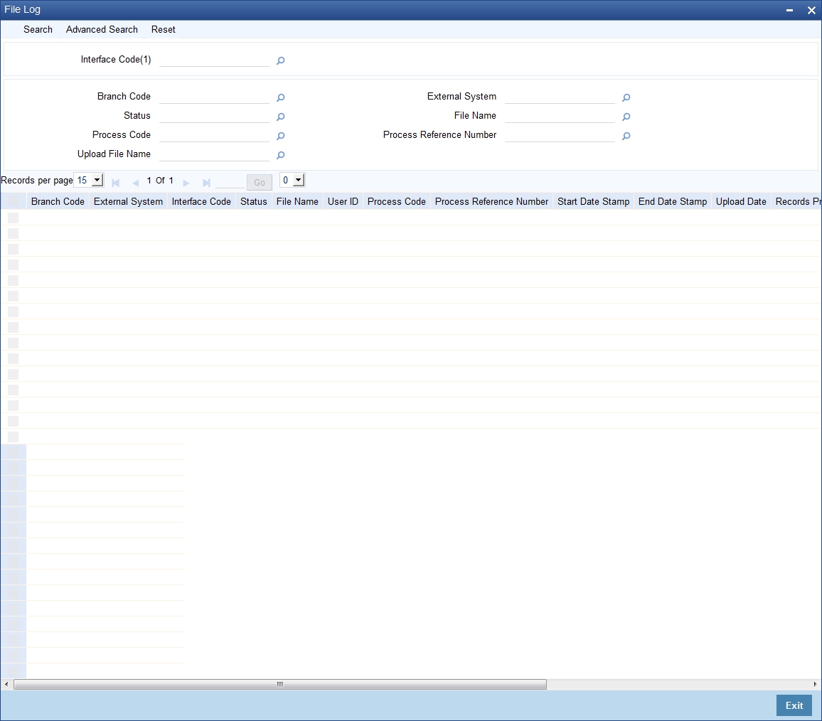 You can track the status of interface processing using the ‘File Log’ screen. You can invoke this screen by typing ‘GISFILOG’ in the field at the top right corner of the Application tool bar and clicking the adjoining arrow button.