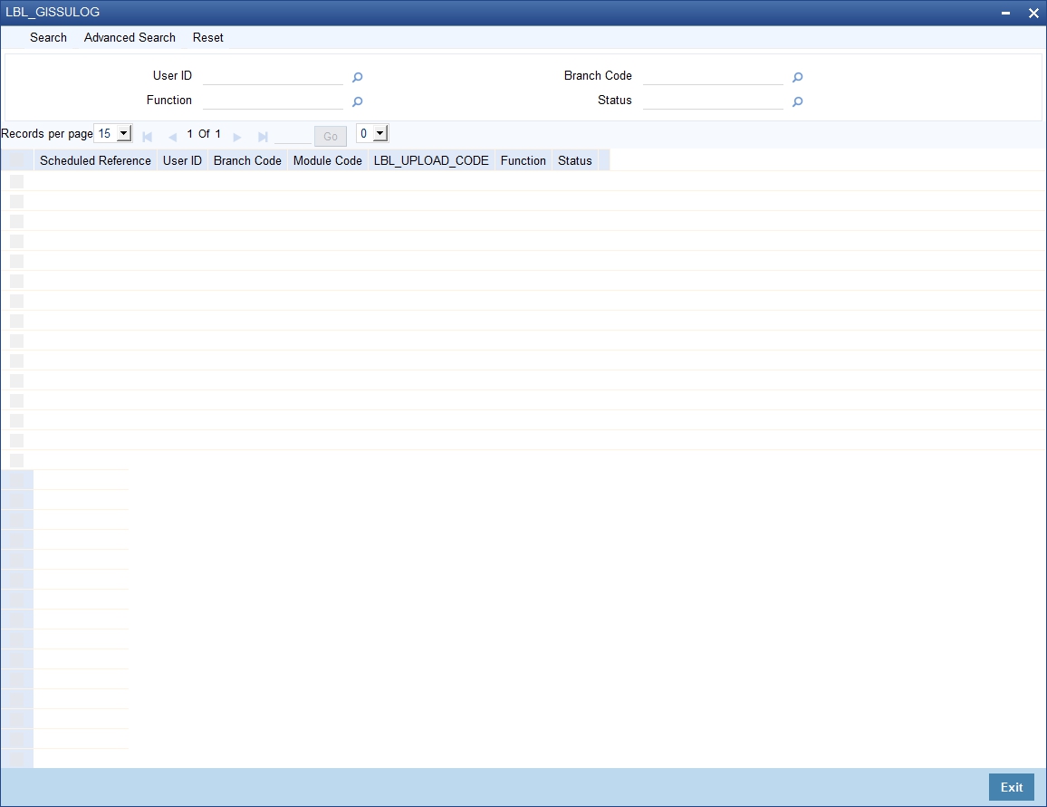 To invoke ‘Scheduled Upload Logs’ screen, type ‘GISSULOG’ in the field at the top right corner of the application toolbar and click the adjoining arrow button.