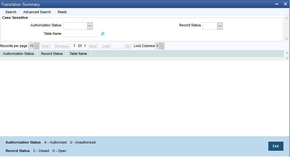 You can view the translation details maintained in the system using ‘Translation Summary’ screen. You can invoke this screen by typing ‘GISTRANS’ in the field at the top right corner of the Application tool bar and clicking the adjoining arrow button.