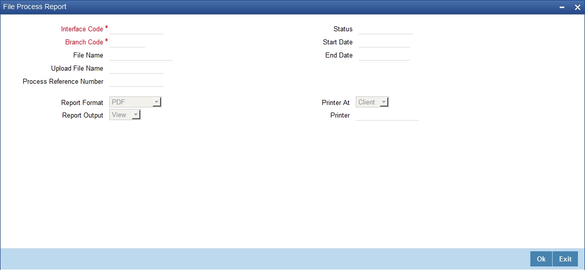 You can view a standard online report for the upload exception details of the interface in the 'File Process Report' screen.