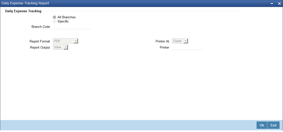 You can generate this report for all the branches or a specific branch alone. If you choose ‘All Branches’, the system will generate the report for all the branch codes. If you choose ‘Specific’, you need to select the branch code for which you need to generate the report.
