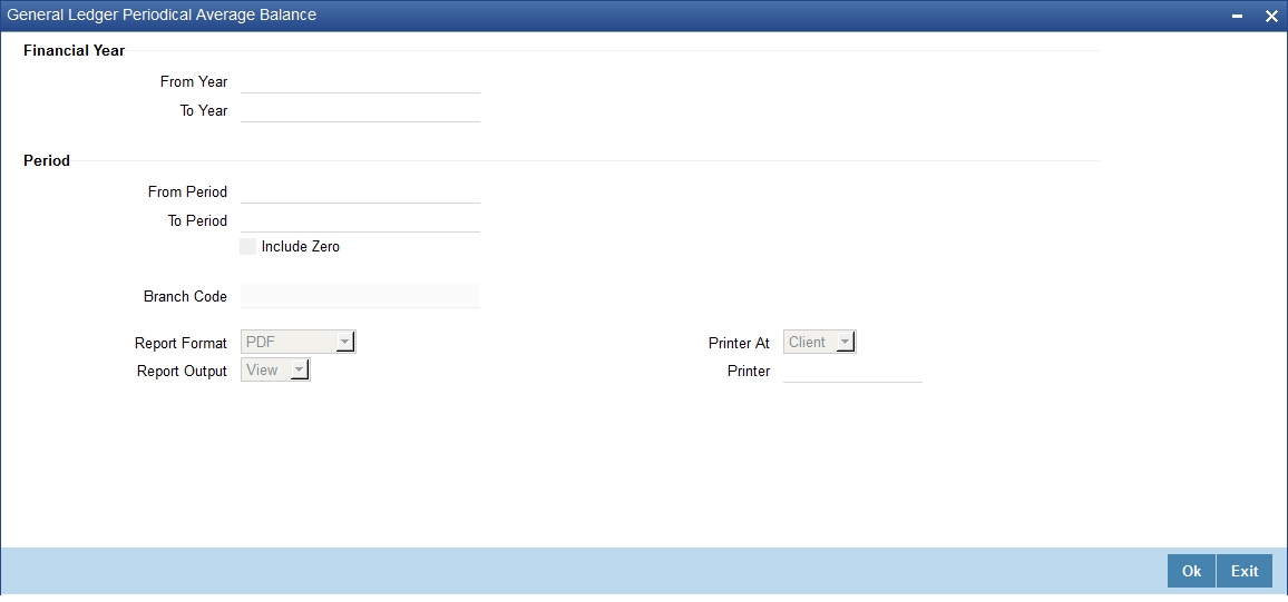 You can set preferences as to generation of this report using ‘Monthly Average Balance for Entire GL Report’ screen. To invoke the screen, type ‘GLRPMABR’ in the field at the top right corner of the Application tool bar and click the adjoining arrow button.