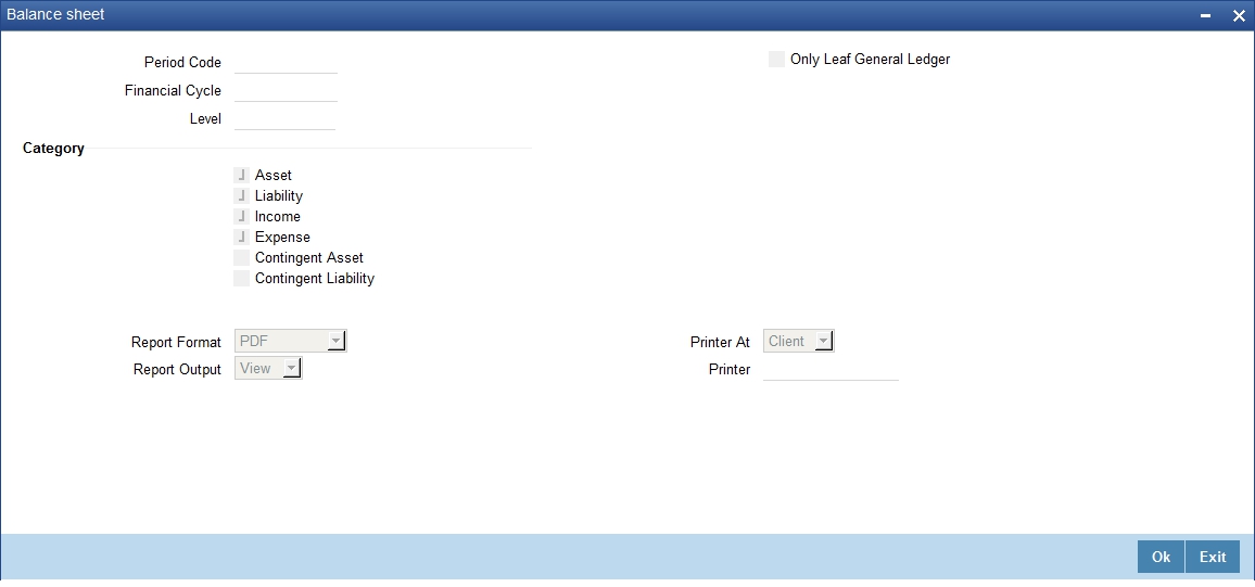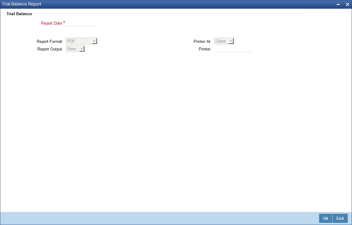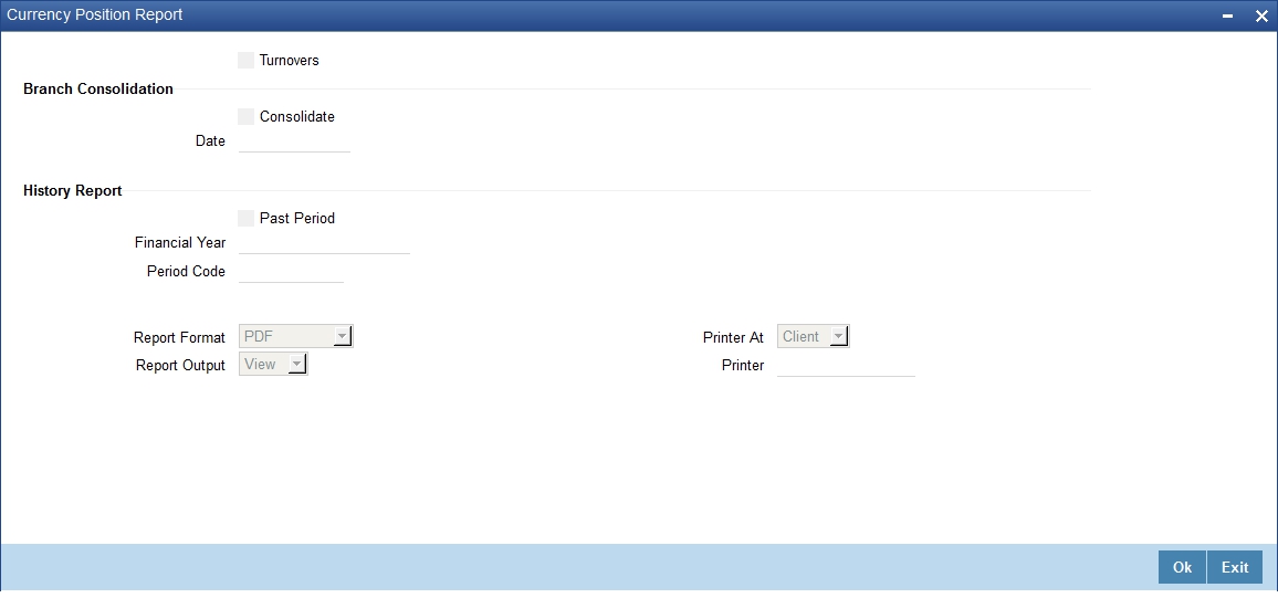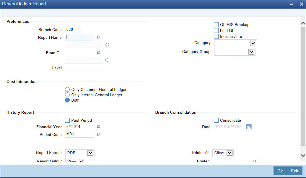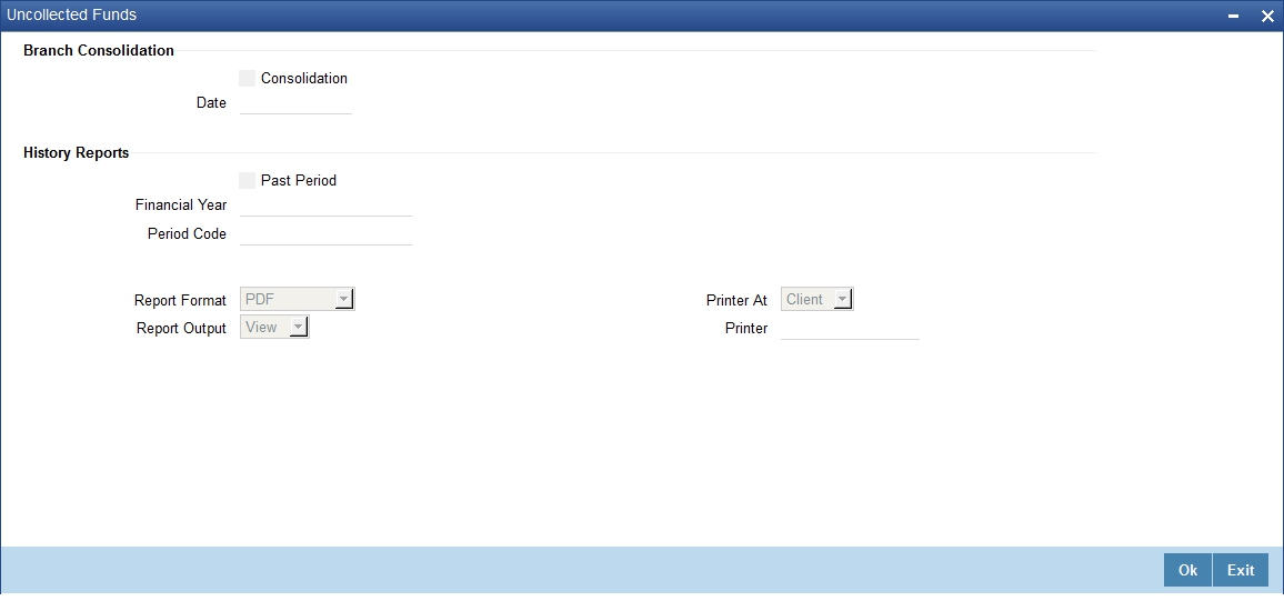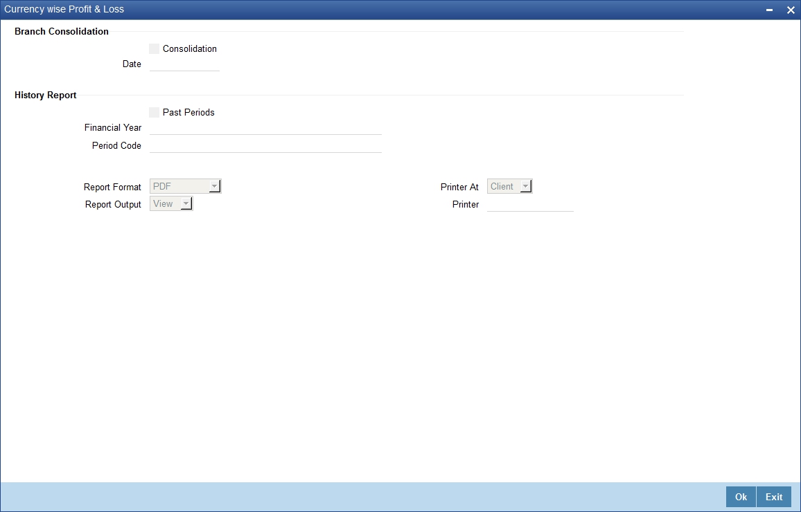 You can indicate that the report should be consolidated across the branches as per the reporting structure defined at your branch. If you choose to consolidate the balances (to recall, the GL structure will be the same in all the branches in a reporting structure), you should also indicate the date as of which the consolidation should be done.