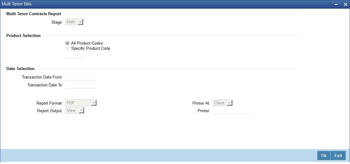 This report gives the details of the multi tenor bills for the selected date range.