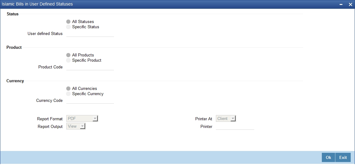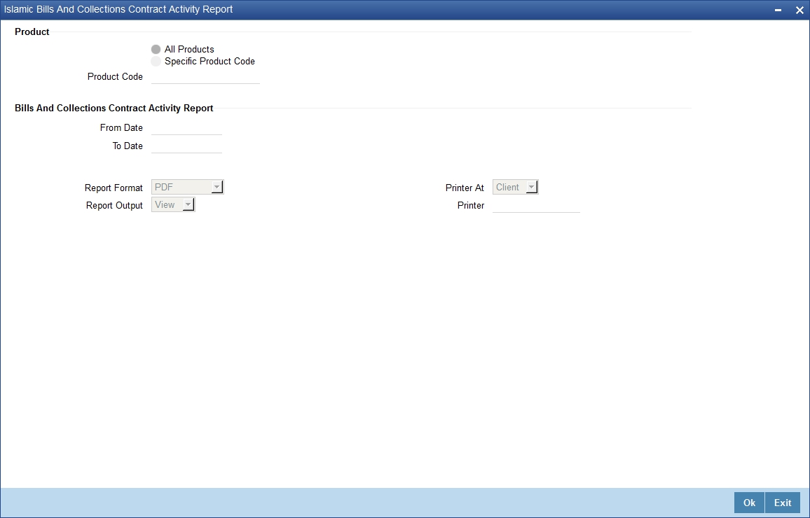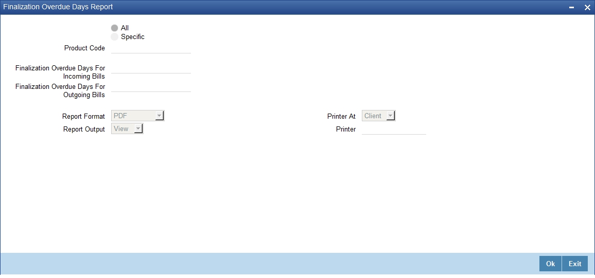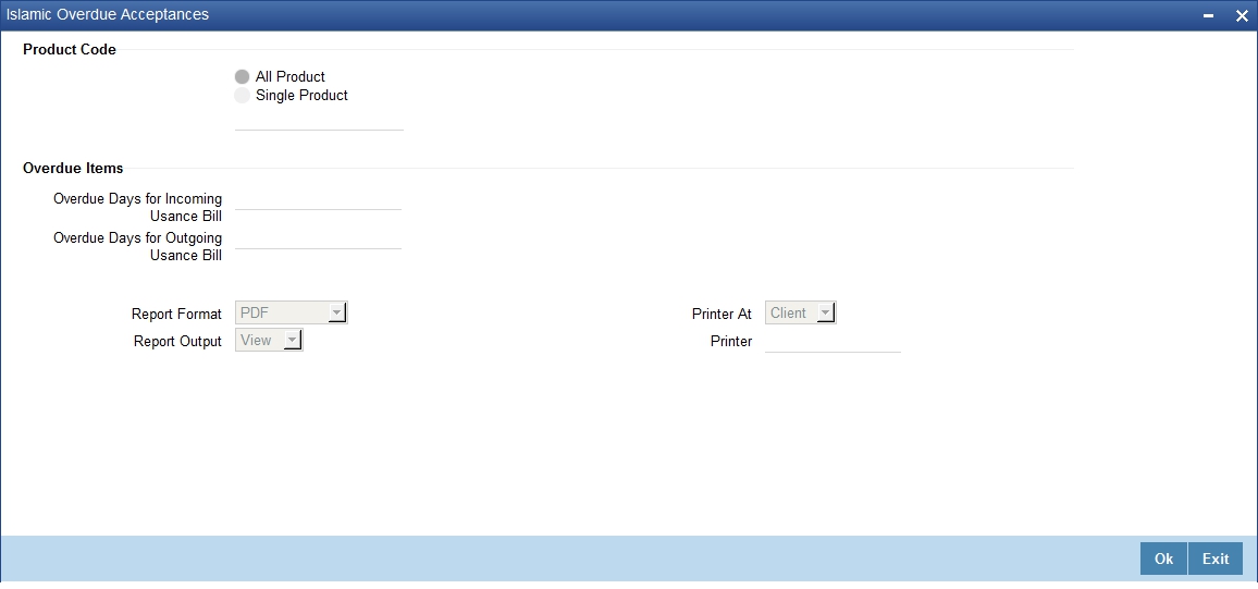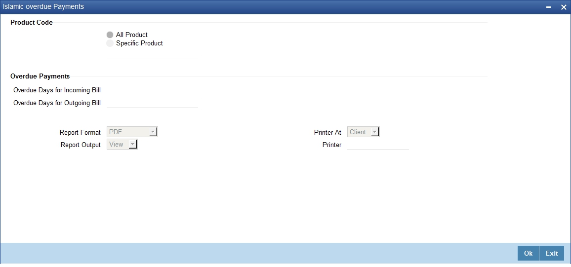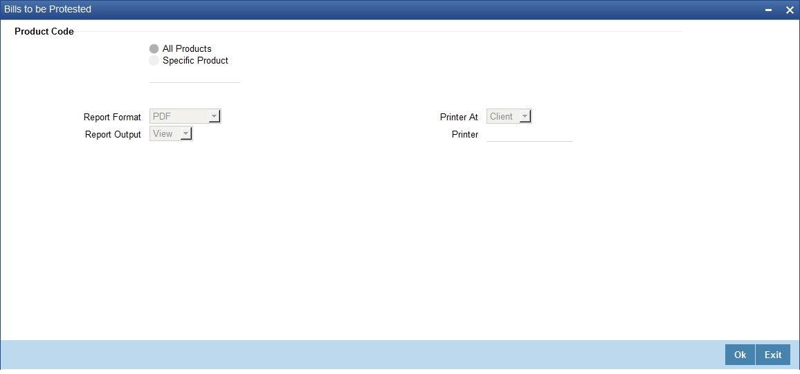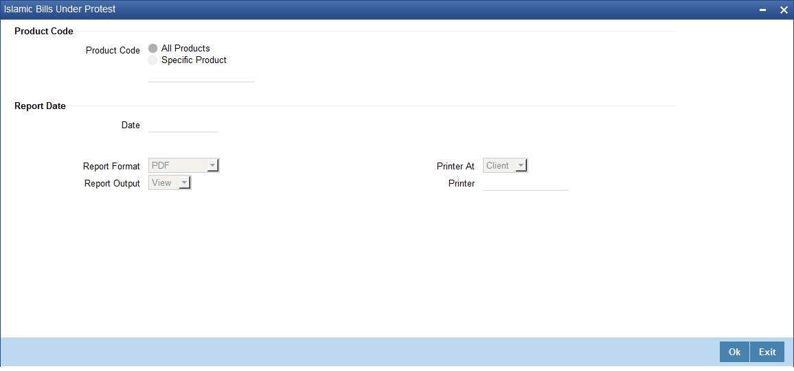 Specify a valid product code for which you want to generate report from the adjoining option list.