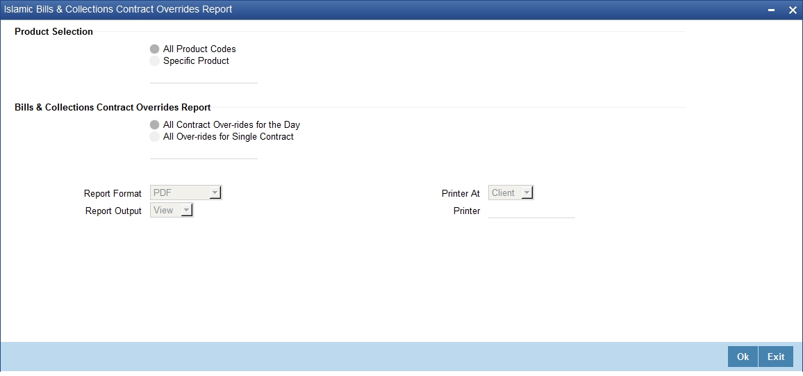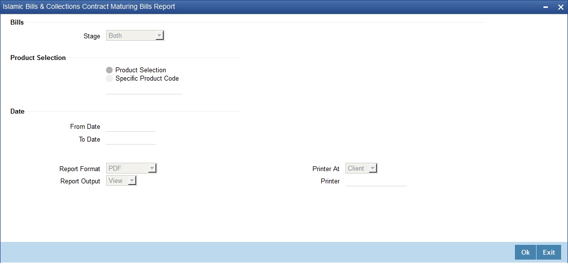 Information about Islamic Bills and Collections can be retrieved as a report.