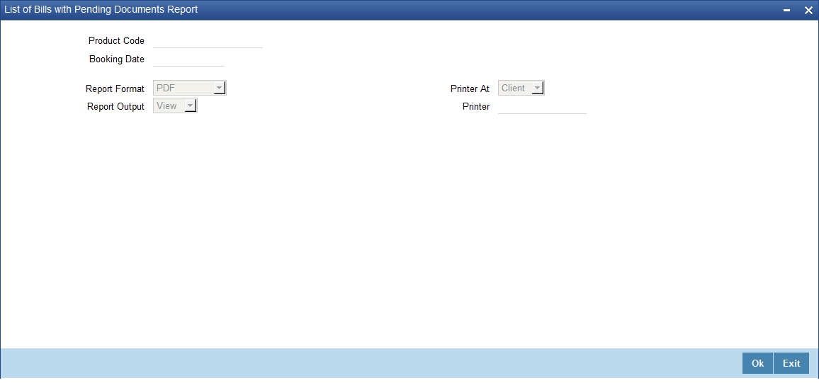 The Bills to be Protested report print all the bills which need to be protested for Non-payment, Non-acceptance or Non approval of discrepancies. A bill whose protest dates for either Non-payment or Non-acceptance is later than today will also be displayed in the report.