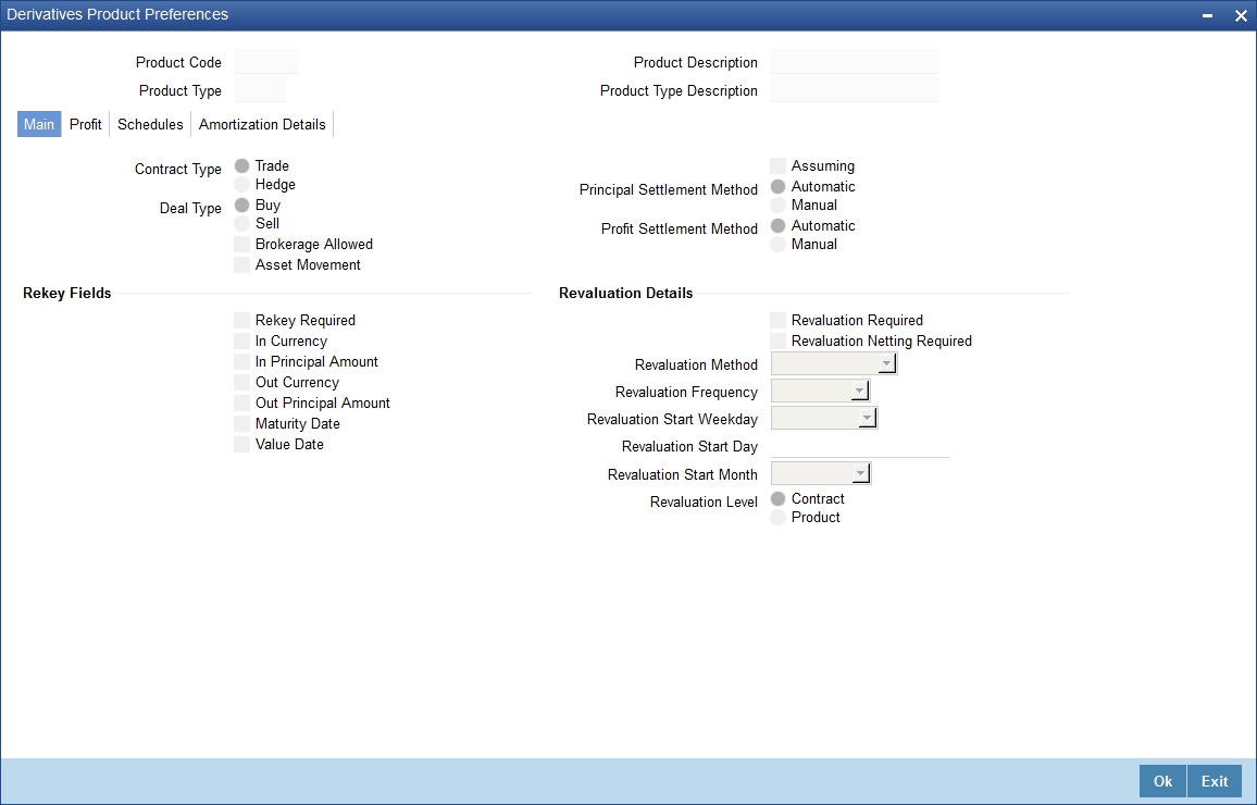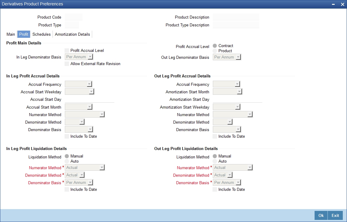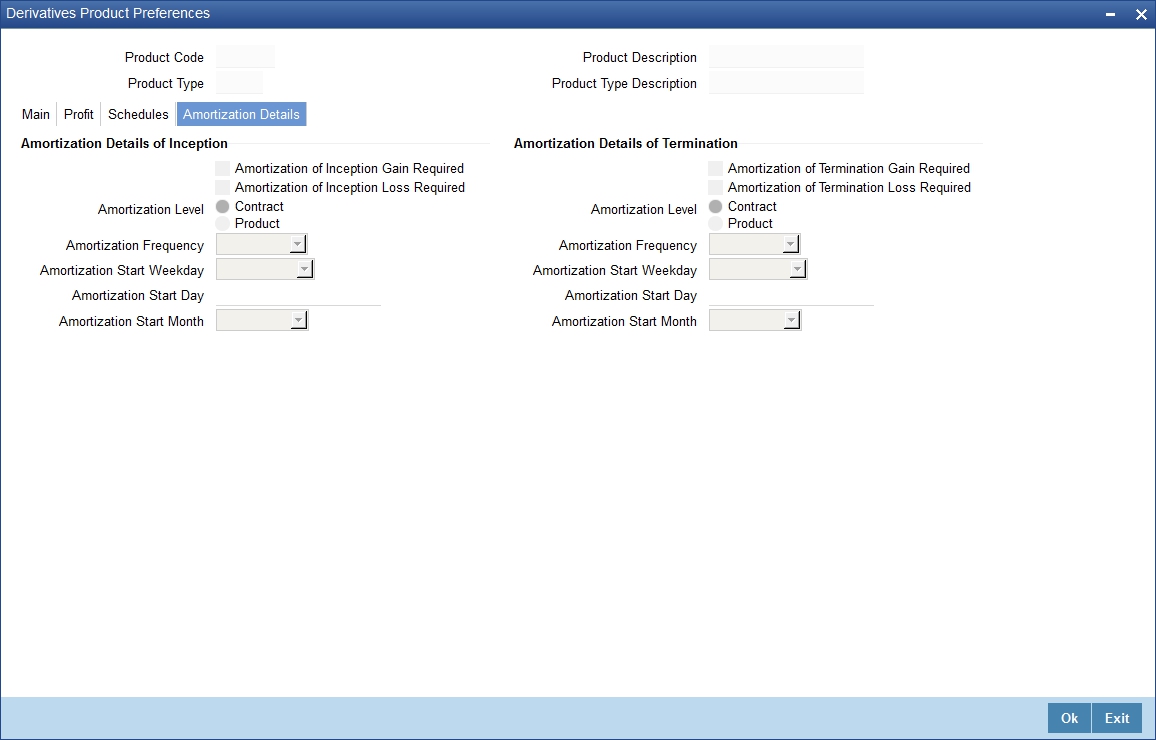 If you choose these options, then amortization of inception/termination gain will be made applicable to all contracts associated with the product. You can however change it while entering the details of the contract. But if you indicate that amortization is not required then you will not be allowed to change this preference while processing the contract.