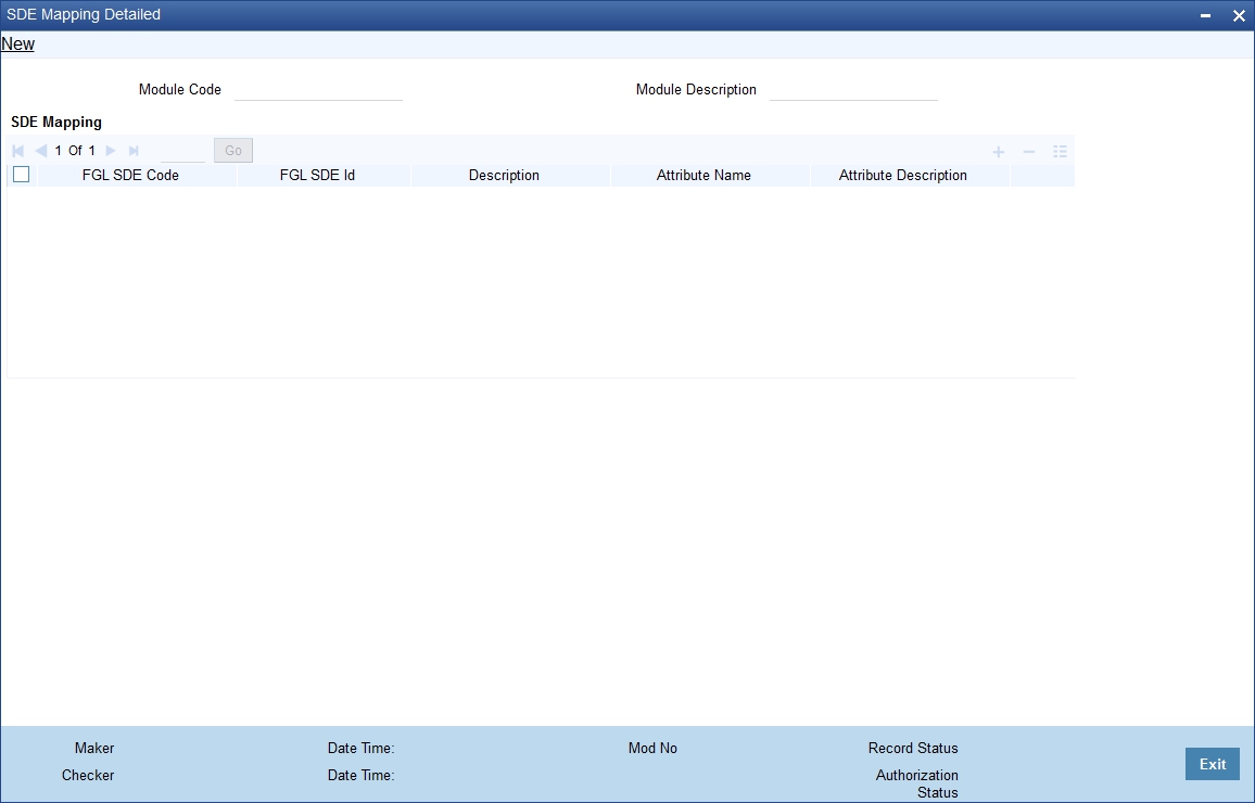 Specify the module code. You can map the attributes of transactions entered in this module to corresponding SDE from this screen.