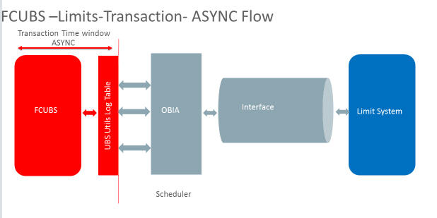 If the mode of limits installation is selected as ASYNC (Standalone/Componentized), the limits requests will be logged with Limits Pending Status in FCUBS Limits Queue. These pending limits requests are picked by a job to form the webservices XML requests. The status of the limit request will be updated in FCUBS based on the external limits response. The status can be Approved, Rejected or Timed-out. FCUBS will authorize the transactions that are in Approved status.