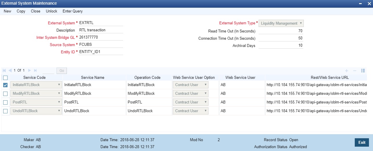 You can capture the details of external payment system in External System Maintenance screen. You can invoke this screen by typing ‘IFDEPSMT’ in the top right corner of the Application toolbar and clicking the adjoining arrow button.
