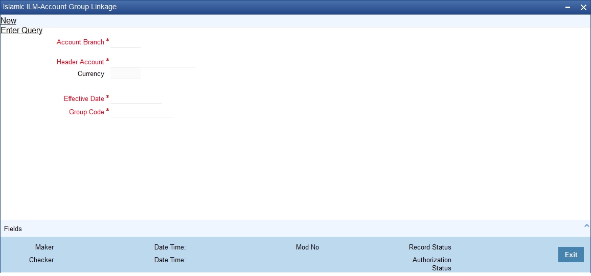 You can link the account structure to the group codes that you have maintained in the ’Islamic Account Group Linkage Maintenance’ screen. You can invoke the ’Account Group Linkage Maintenance’ screen by typing ‘IIDGRPLN’ in the field at the top right corner of the Application tool bar and clicking on the adjoining arrow button.