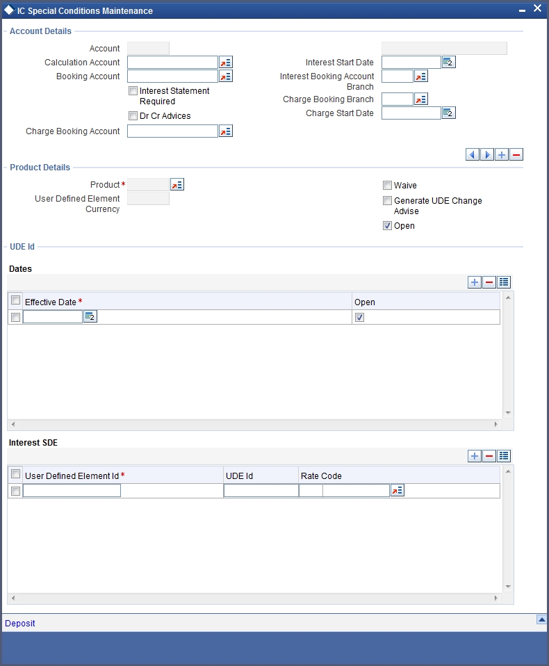 Click ‘Profit’ button in ‘Customer Account Maintenance’ screen to invoke ‘IP Special Conditions Maintenance’ sub-screen, where you can maintain IP special conditions for ILM accounts.