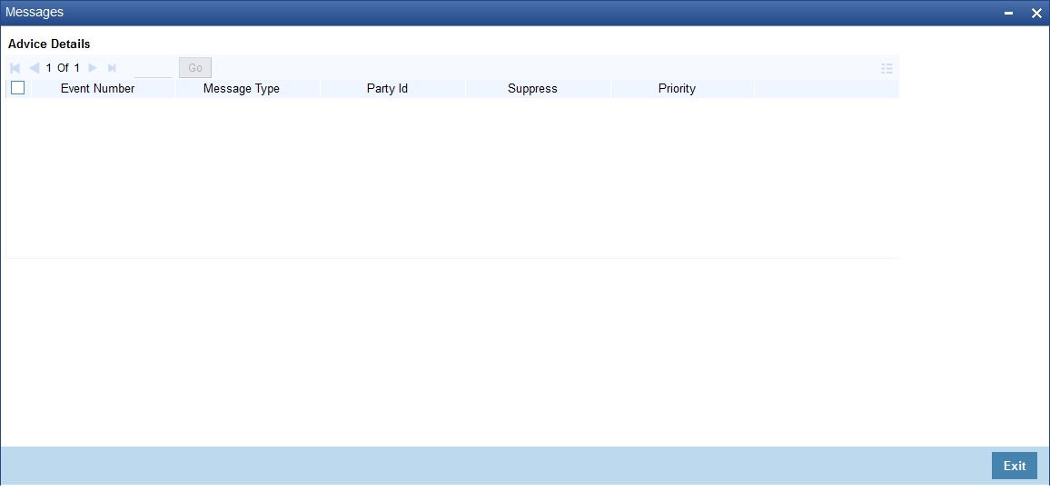 Click ‘Messages’ button and invoke the ‘Messages’ screen to view the messages generated for the intermediary.