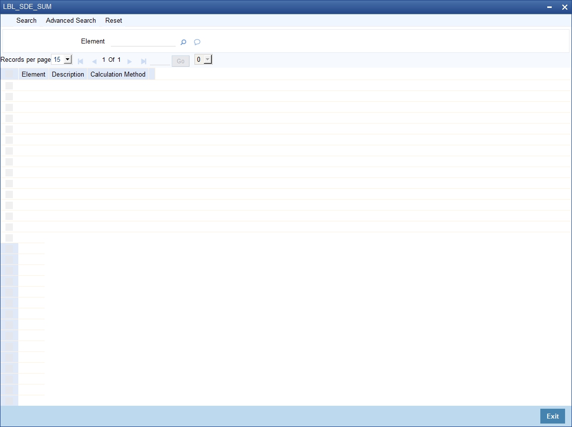 You can view all SDEs maintained for intermediaries in the ‘Intermediary SDE Maintenance Summary’ screen. You can invoke this screen by typing ‘INSSDEMT’ in the field at the top right corner of the Application tool bar and clicking the adjoining arrow button.