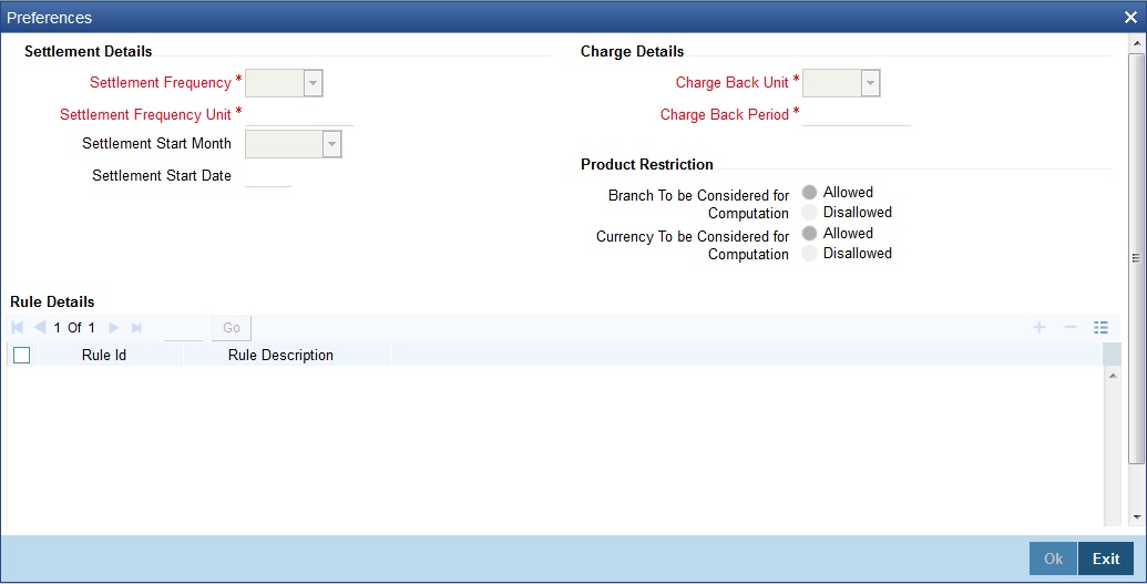 Click ‘Preferences’ button and invoke the Intermediary Product ‘Preferences’ screen to maintain generic attributes of the product.